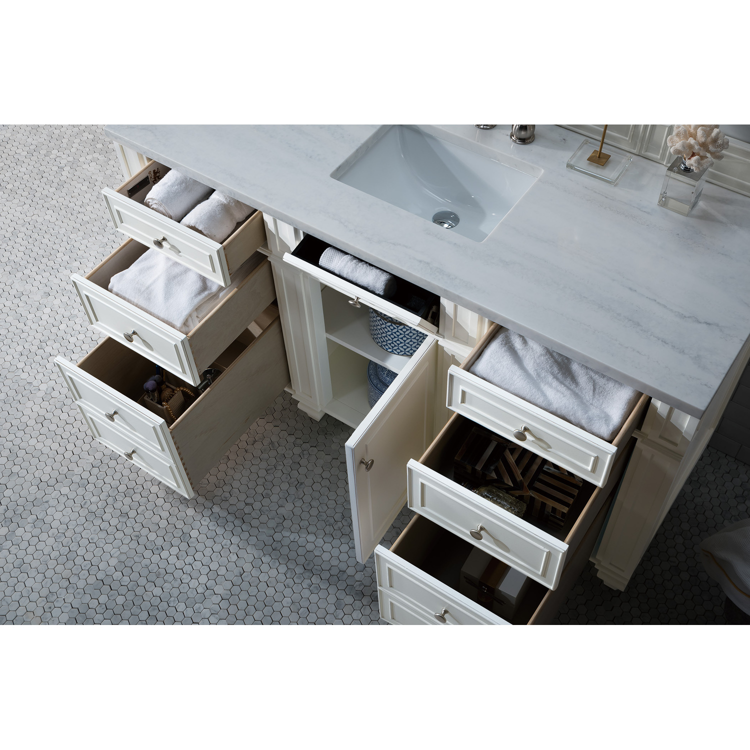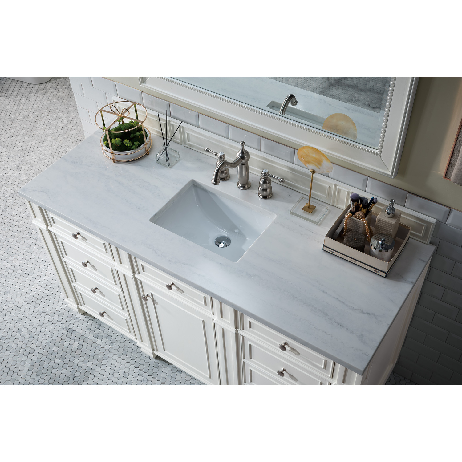 James Martin Bristol 60 inch Single Bathroom Vanity, Bright White w/ 3 CM Arctic Fall Solid Surface Top 157-V60S-BW-3AF
