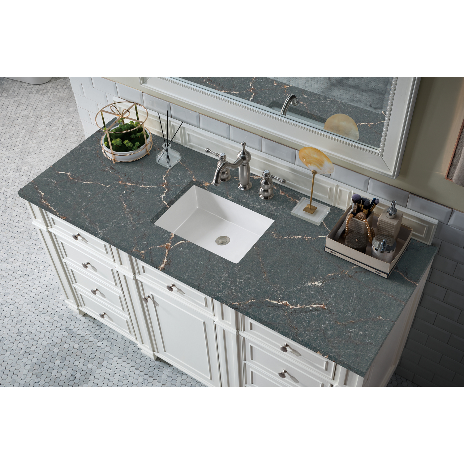 James Martin Bristol 60 inch Single Vanity, Bright White w/ 3 CM Parisien Bleu Quartz Top, 840108967573, 157-V60S-BW-3PBL