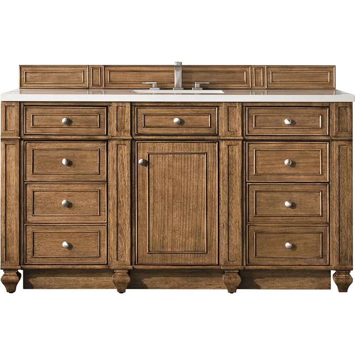 James Martin Bristol 60 inch Single Bathroom Vanity, Saddle Brown w/ 3 CM White Zeus Quartz Top 157-V60S-SBR-3WZ