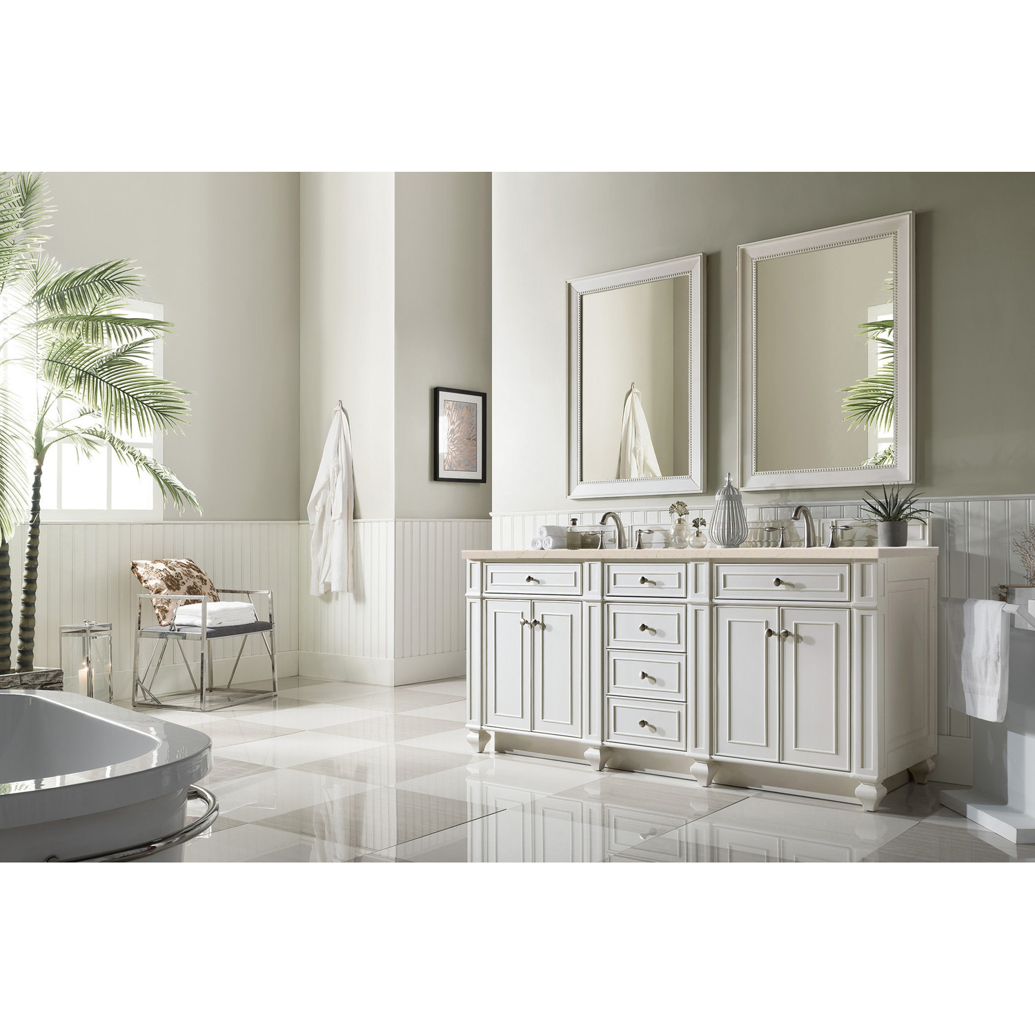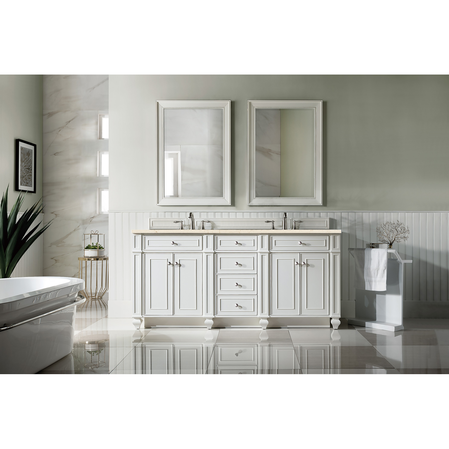James Martin Bristol 72 inch Double Bathroom Vanity, Bright White w/ 3 CM Eternal Marfil Quartz Top 157-V72-BW-3EMR