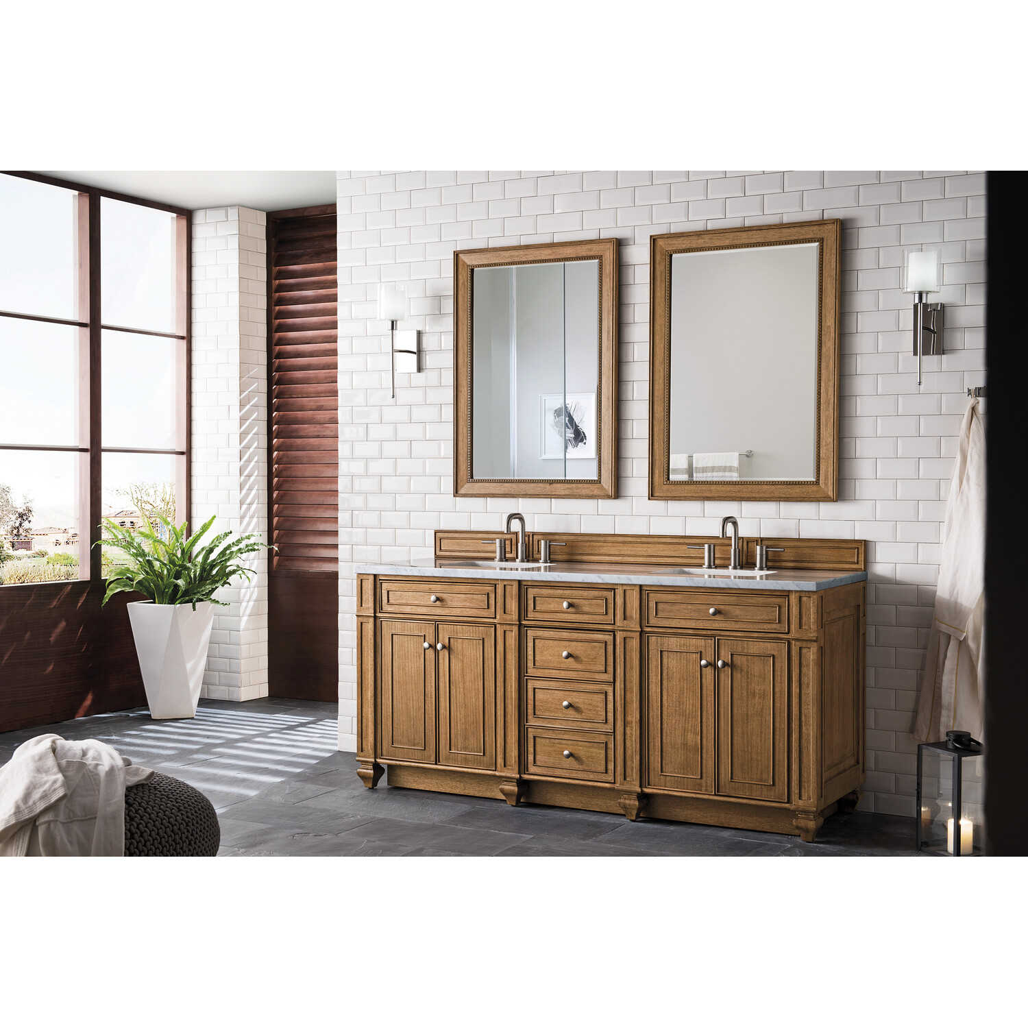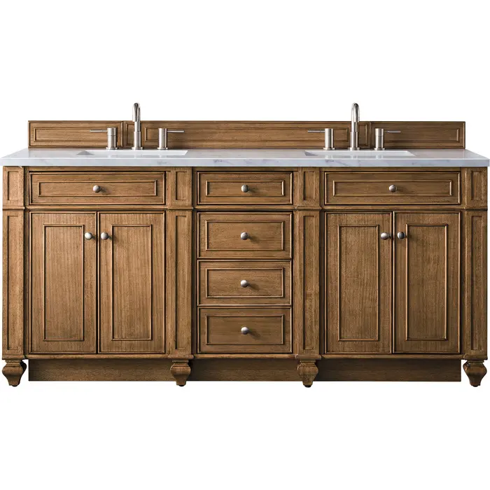 James Martin Bristol 72 inch Double Bathroom Vanity, Saddle Brown w/ 3 CM Arctic Fall Solid Surface Top 157-V72-SBR-3AF