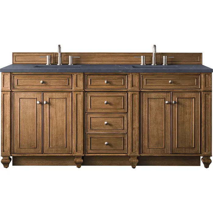 James Martin Bristol 72 inch Double Bathroom Vanity, Saddle Brown w/ 3 CM Charcoal Soapstone Quartz Top 157-V72-SBR-3CSP