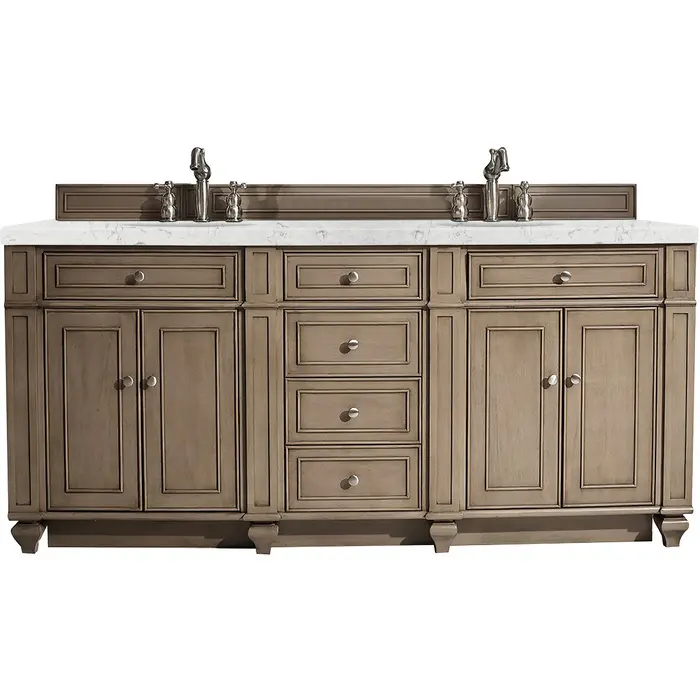James Martin Bristol 72 inch Double Bathroom Vanity, Whitewashed Walnut w/ 3 CM Eternal Jasmine Pearl Quartz Top 157-V72-WW-3EJP