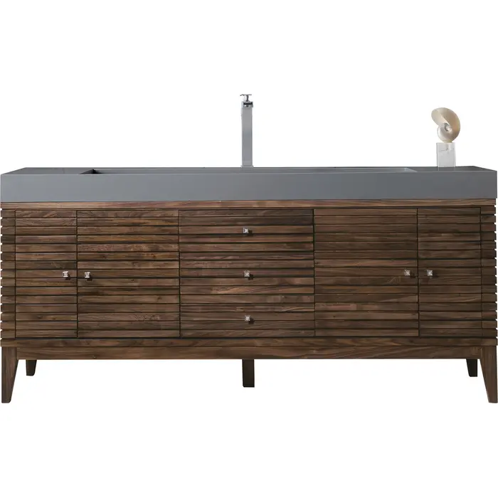 James Martin Linear 72 inch Single Bathroom Vanity, Mid-Century Walnut w/ Dusk Grey Glossy Composite Stone Top 210-V72S-WLT-DGG