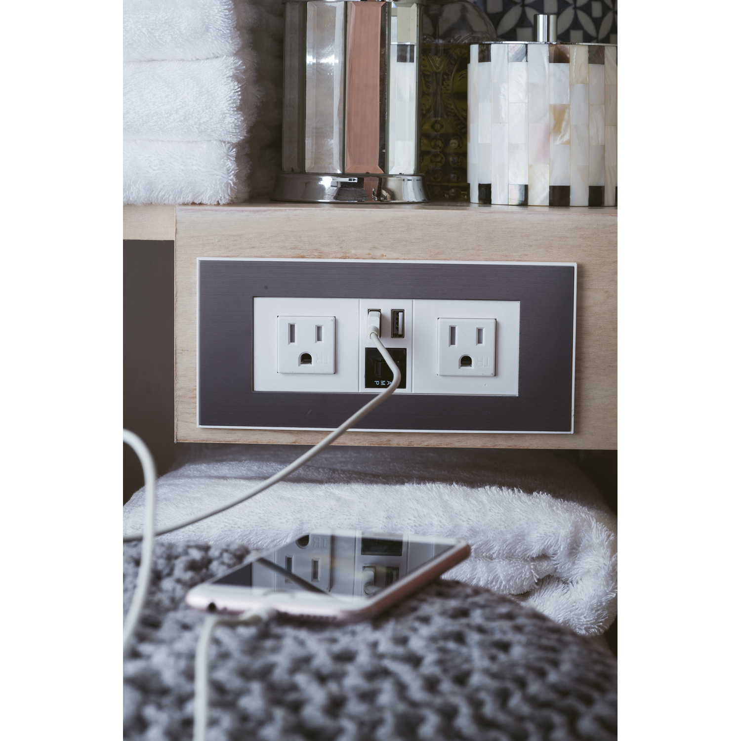 - One 120 Volt UL rated electrical component with two electrical and two USB (2.0) outlets