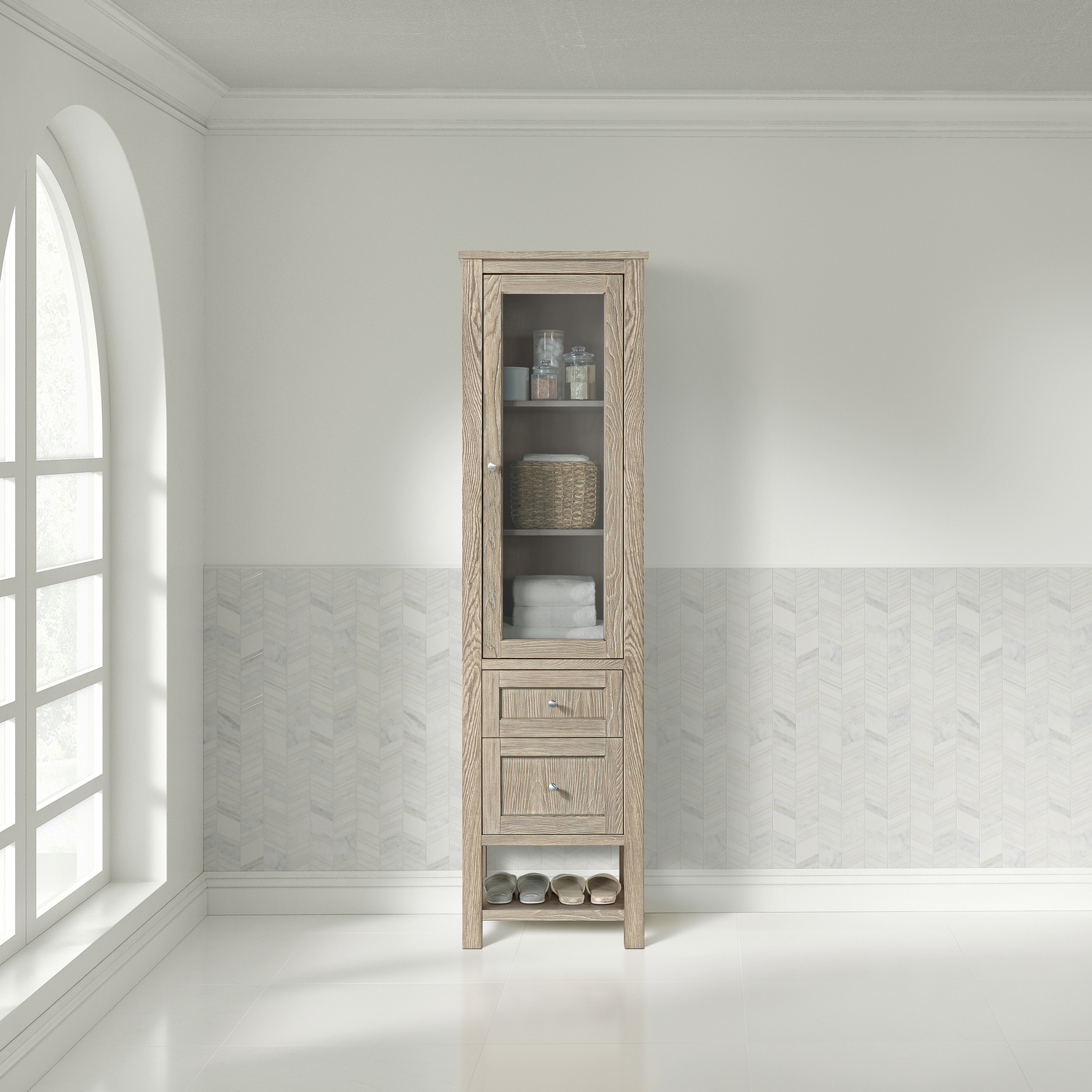 James Martin Breckenridge Linen Cabinet, Whitewashed Oak, 840108983610, 330-LC-WWO