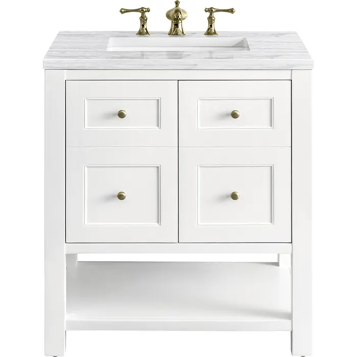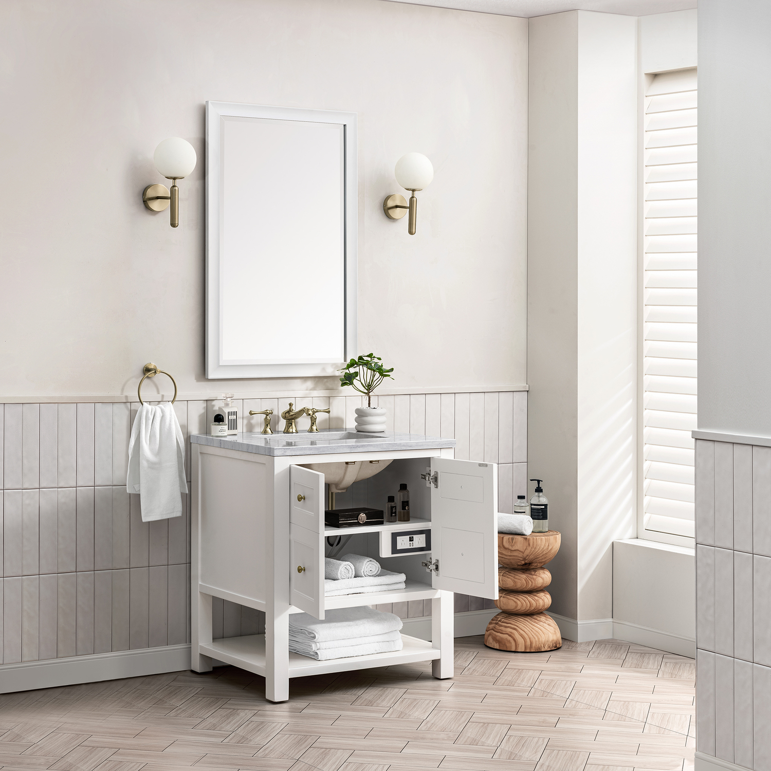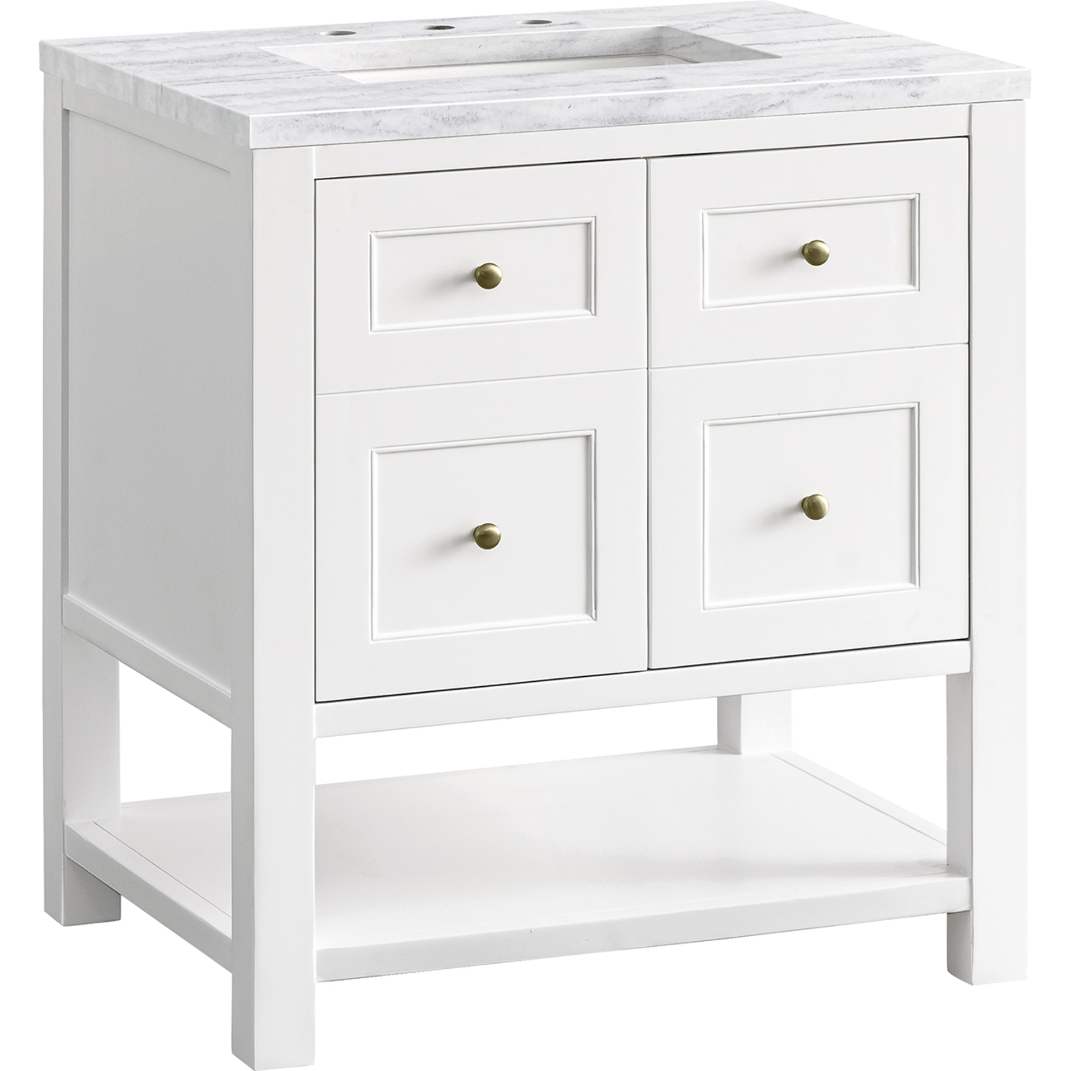 James Martin Breckenridge 30 inch Single Bathroom Vanity, Bright White w/ 3 CM Arctic Fall Top 330-V30-BW-3AF
