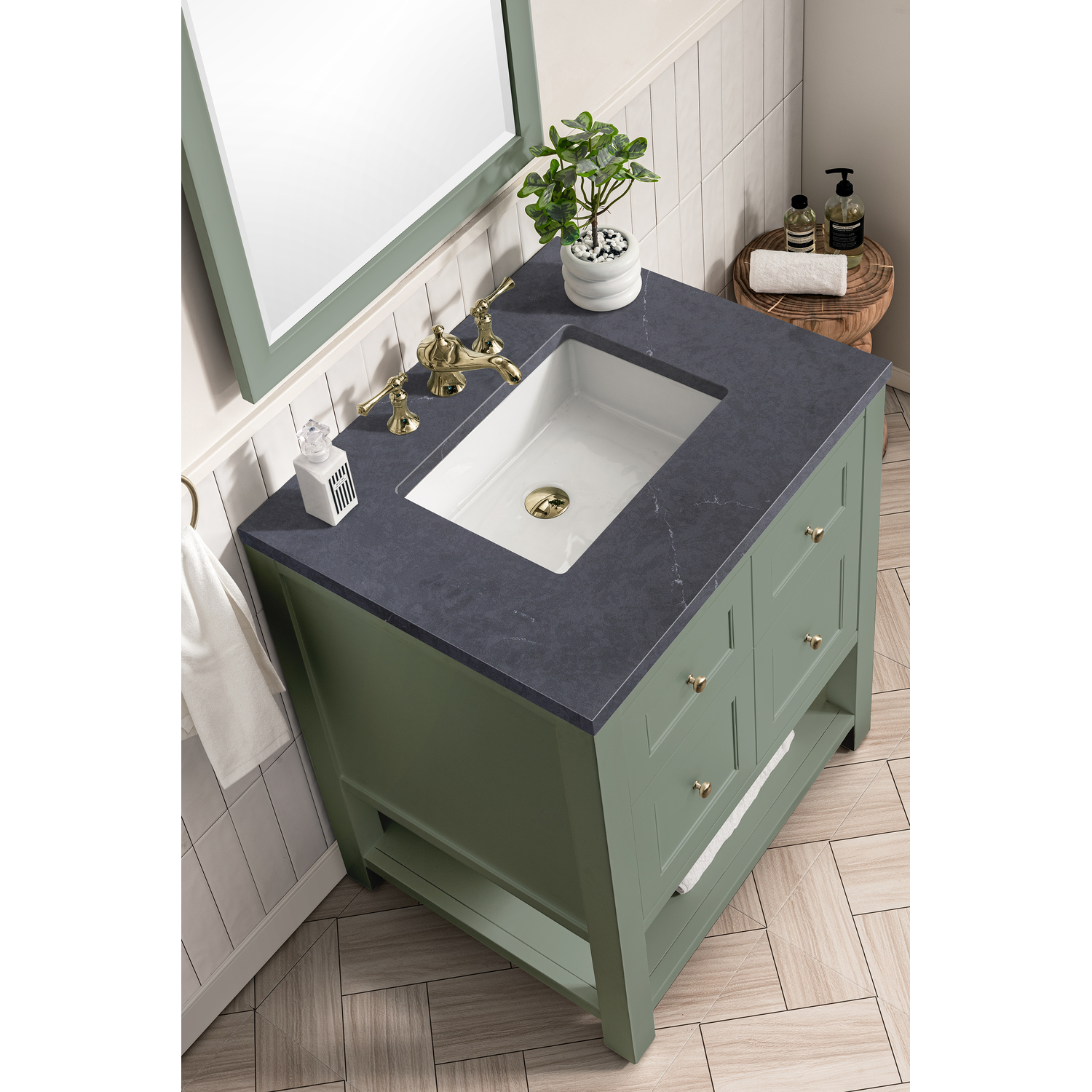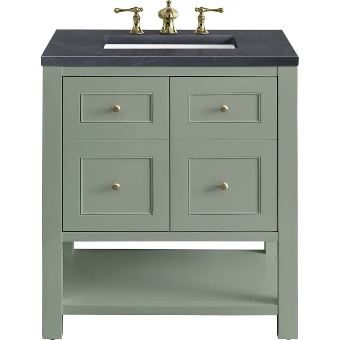 James Martin Breckenridge 30 inch Single Bathroom Vanity, Smokey Celadon w/ 3 CM Charcoal Soapstone Top 330-V30-SC-3CSP