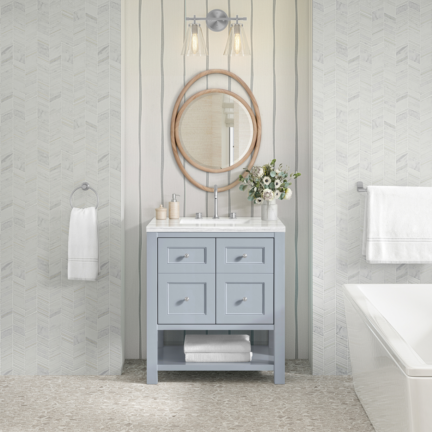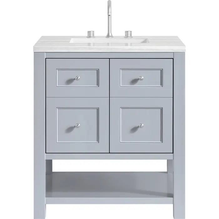 James Martin Breckenridge 30 inch Single Vanity, Serenity Blue, w/ 3 CM Arctic Fall Solid Surface Top, 840467800016, 330-V30-SRB-3AF