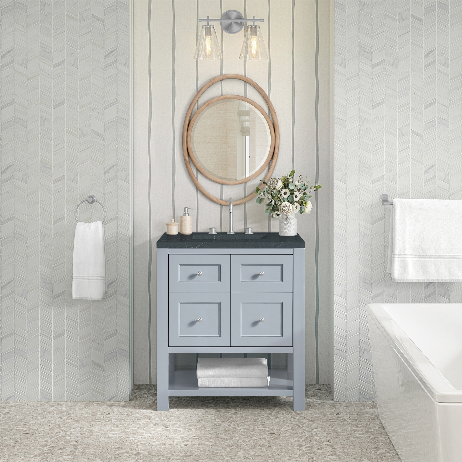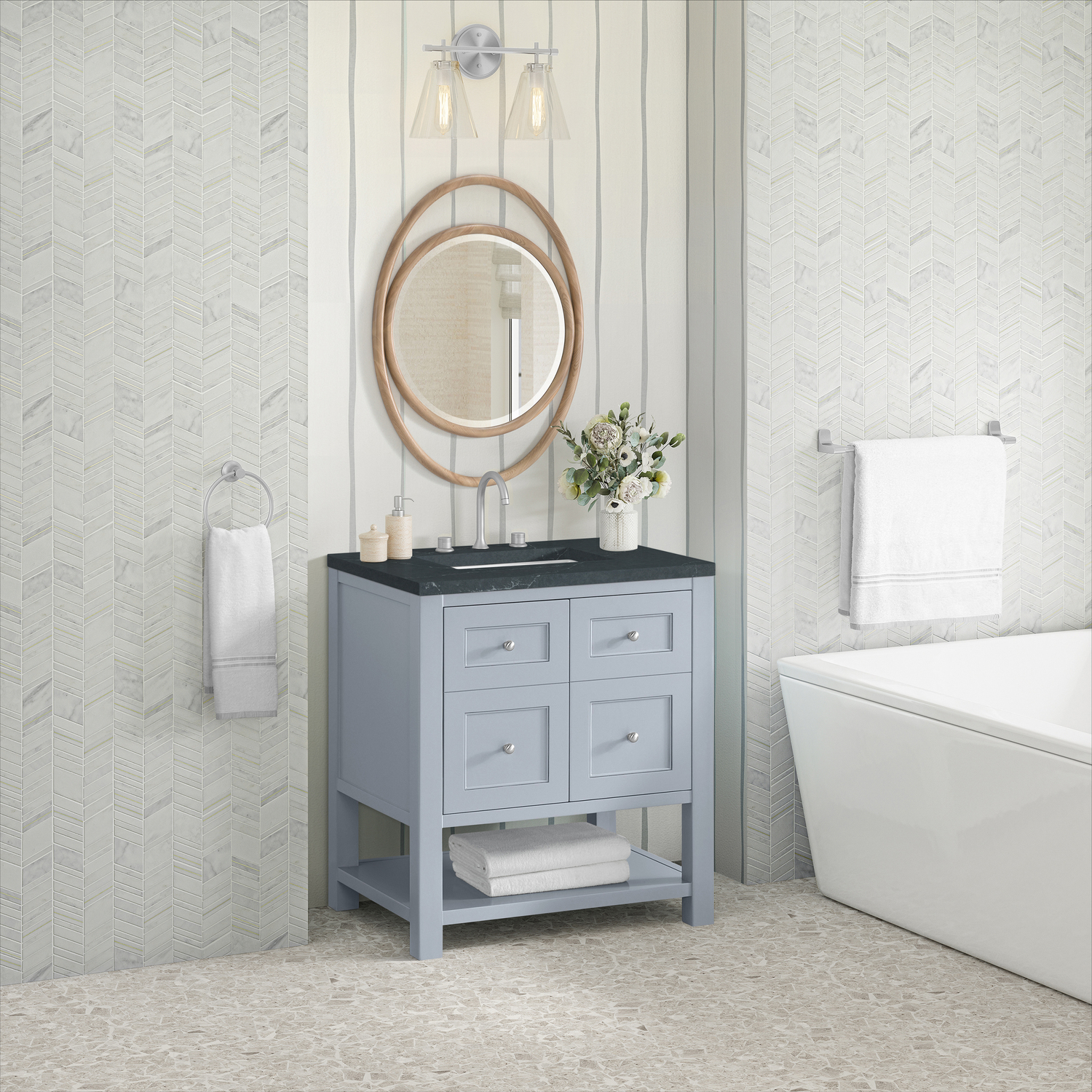James Martin Breckenridge 30 inch Single Vanity, Serenity Blue, w/ 3 CM Charcoal Soapstone Quartz Top, 840467800030, 330-V30-SRB-3CSP