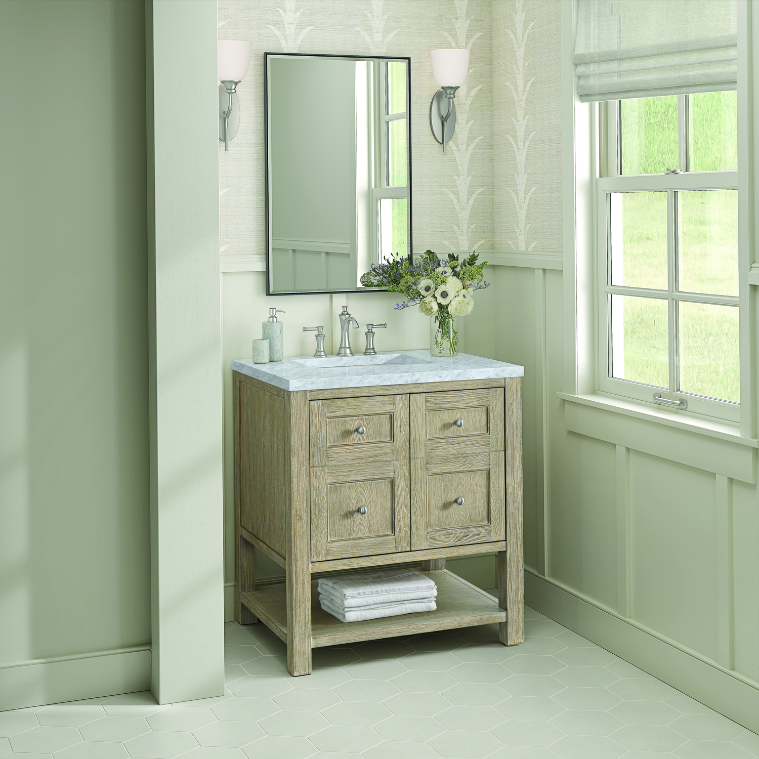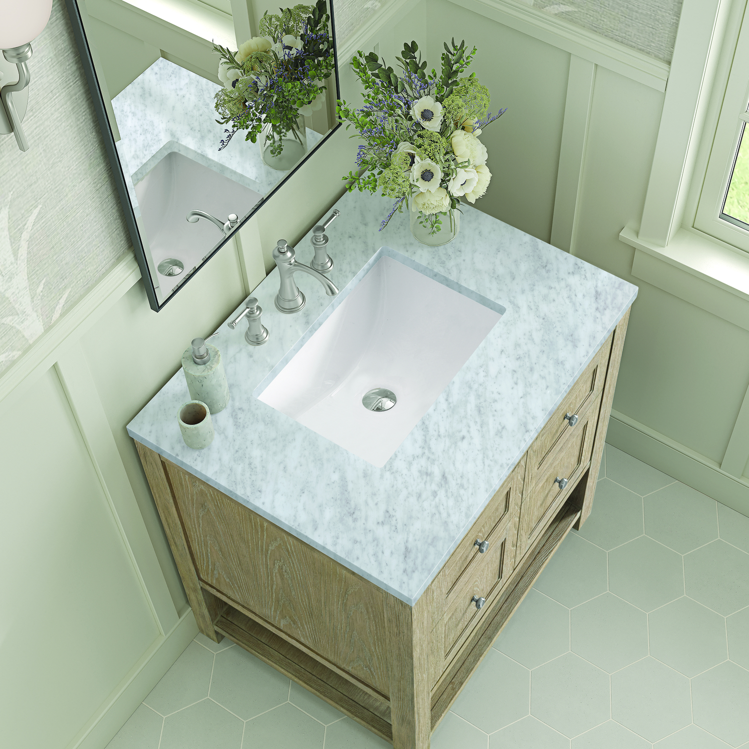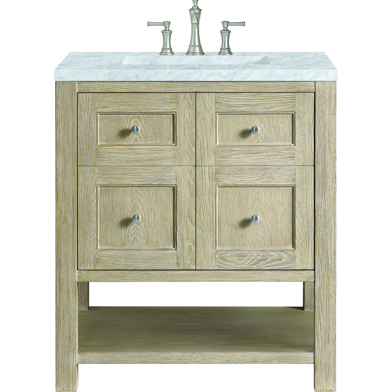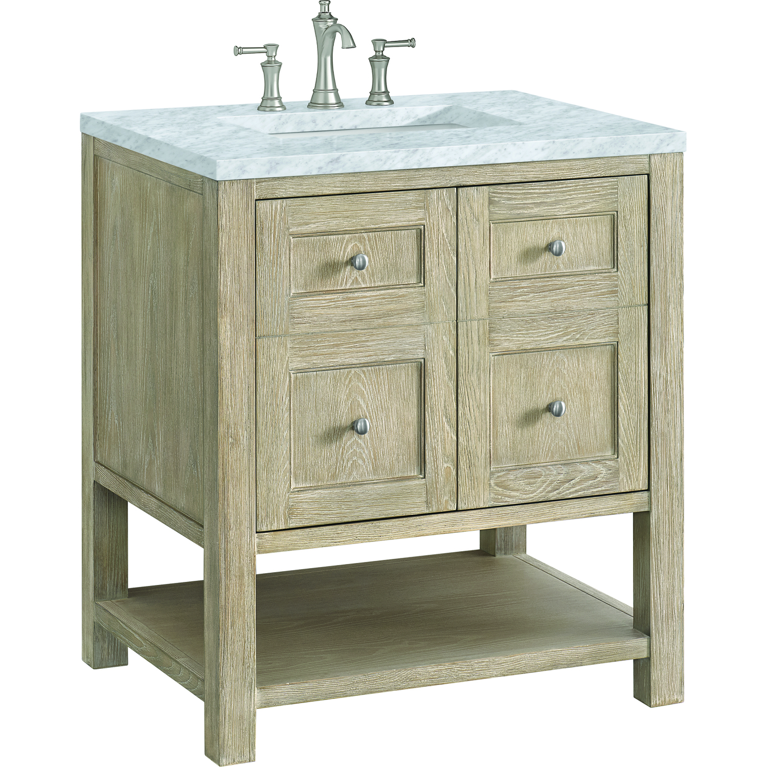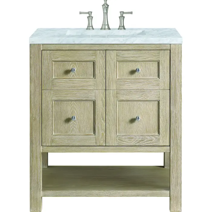 James Martin Breckenridge 30 inch Single Vanity, Whitewashed Oak w/ 3 CM Carrara White Marble Top, 840108970573, 330-V30-WWO-3CAR