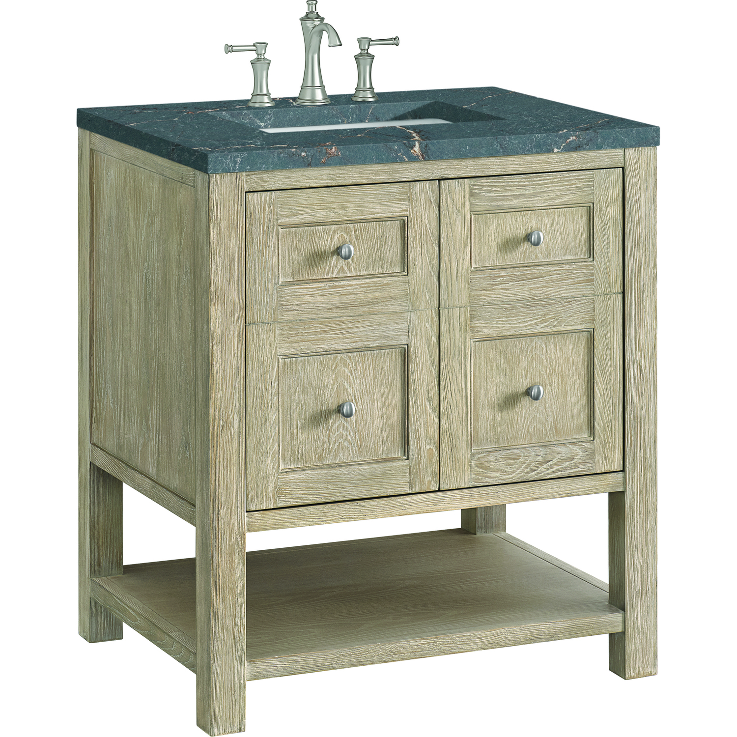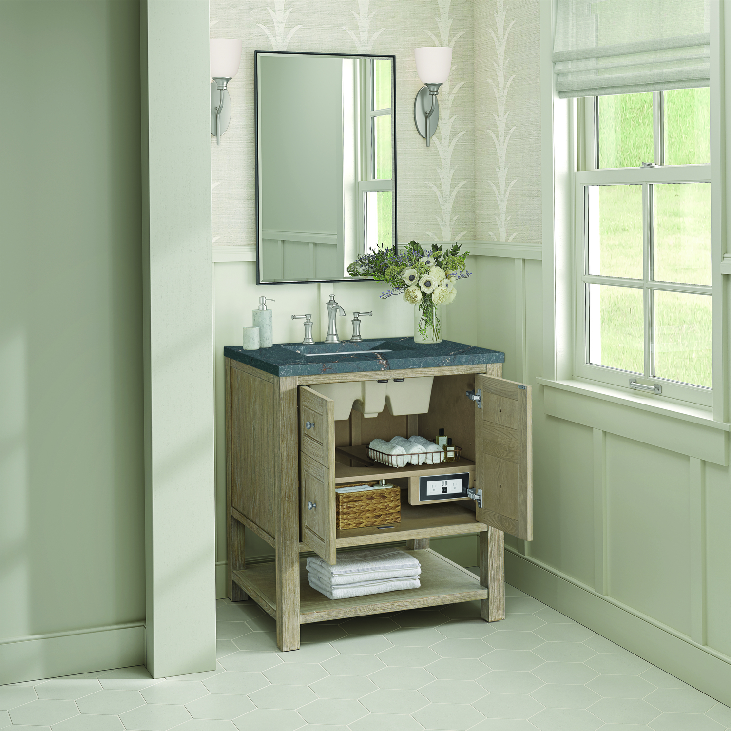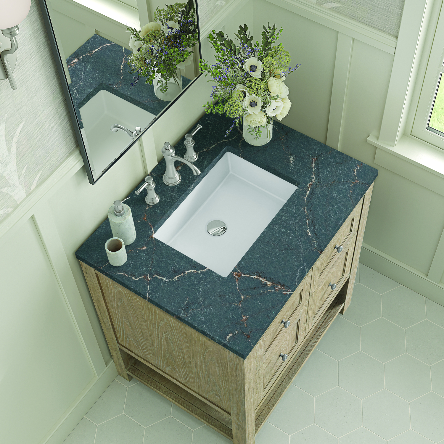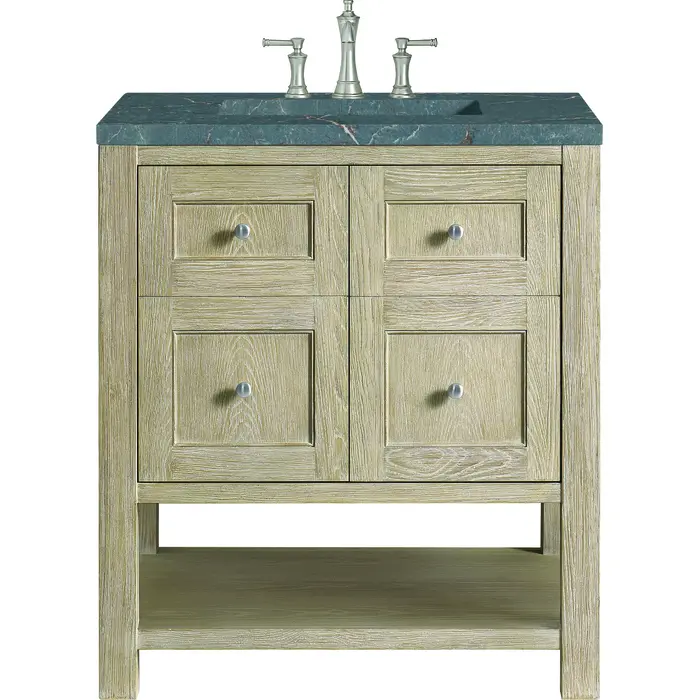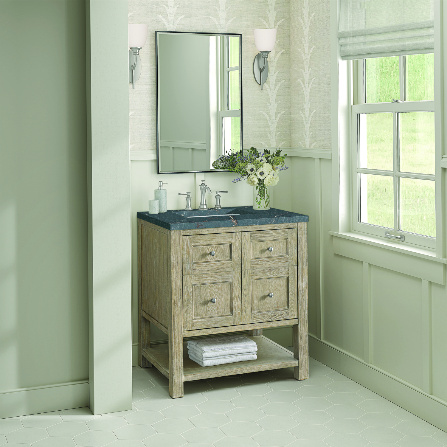 James Martin Breckenridge 30 inch Single Vanity, Whitewashed Oak w/ 3 CM Parisien Bleu Quartz Top, 840108970641, 330-V30-WWO-3PBL