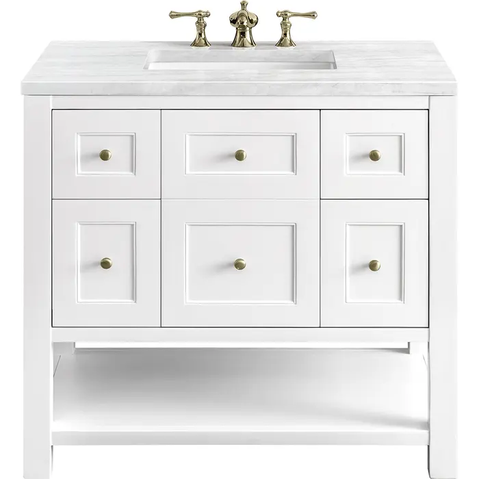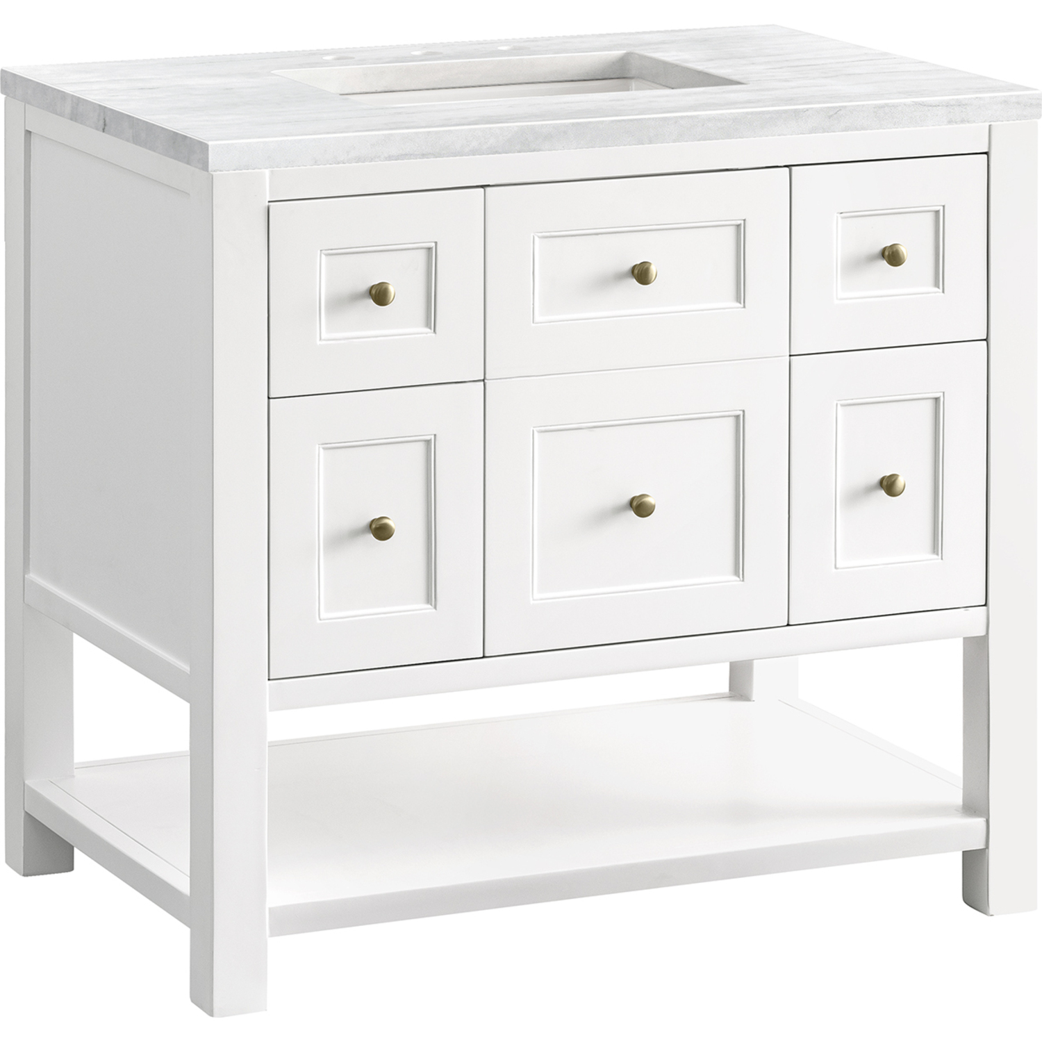 James Martin Breckenridge 36 inch Single Bathroom Vanity, Bright White w/ 3 CM Arctic Fall Top 330-V36-BW-3AF