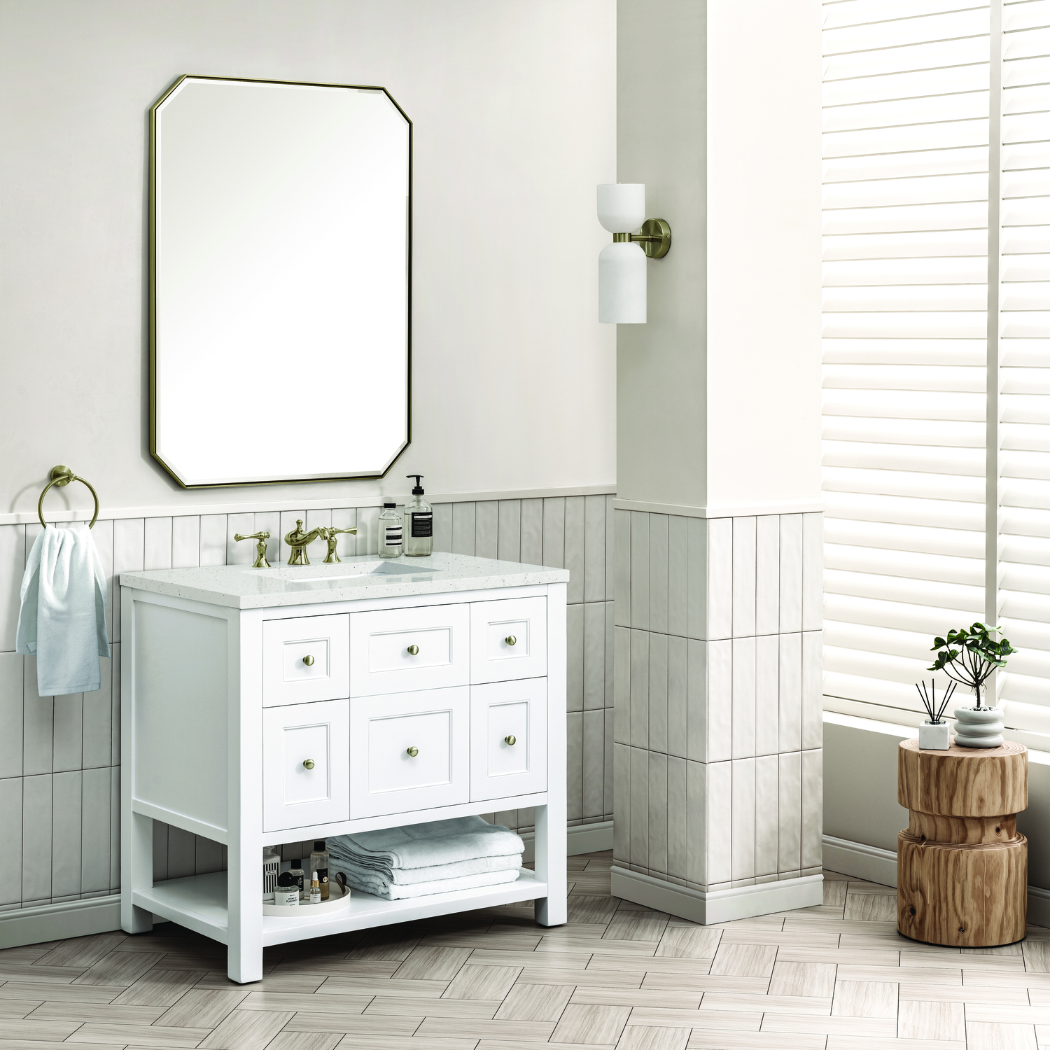 James Martin Breckenridge 36 inch Single Vanity, Bright White w/ 3 CM Lime Delight Top, 840108969355, 330-V36-BW-3LDL