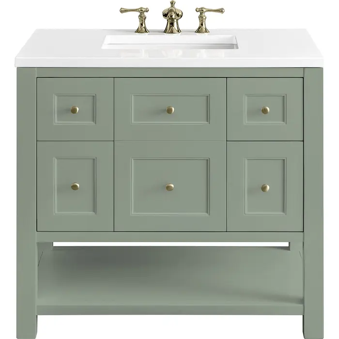 James Martin Breckenridge 36 inch Single Bathroom Vanity, Smokey Celadon w/ 3 CM White Zeus Top 330-V36-SC-3WZ