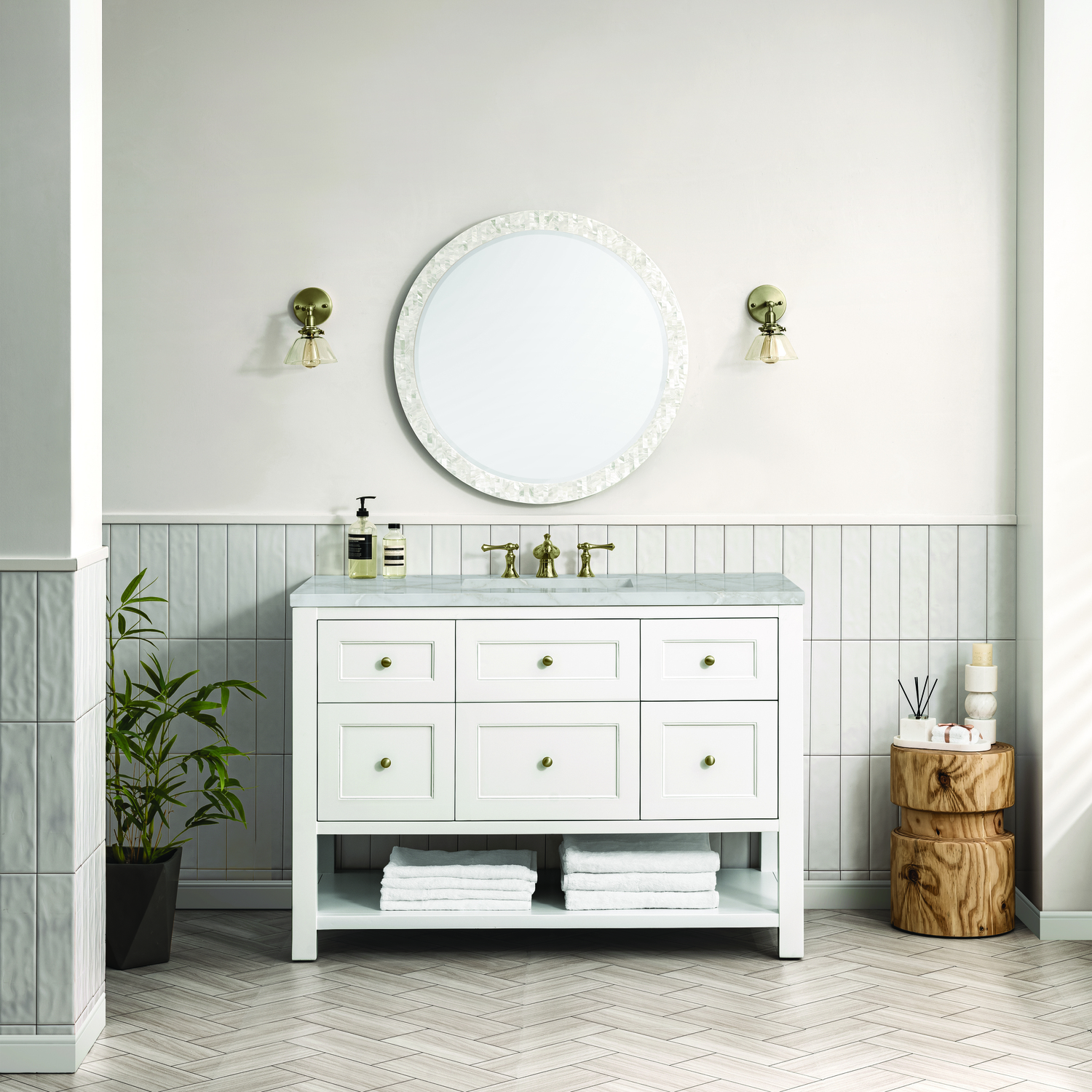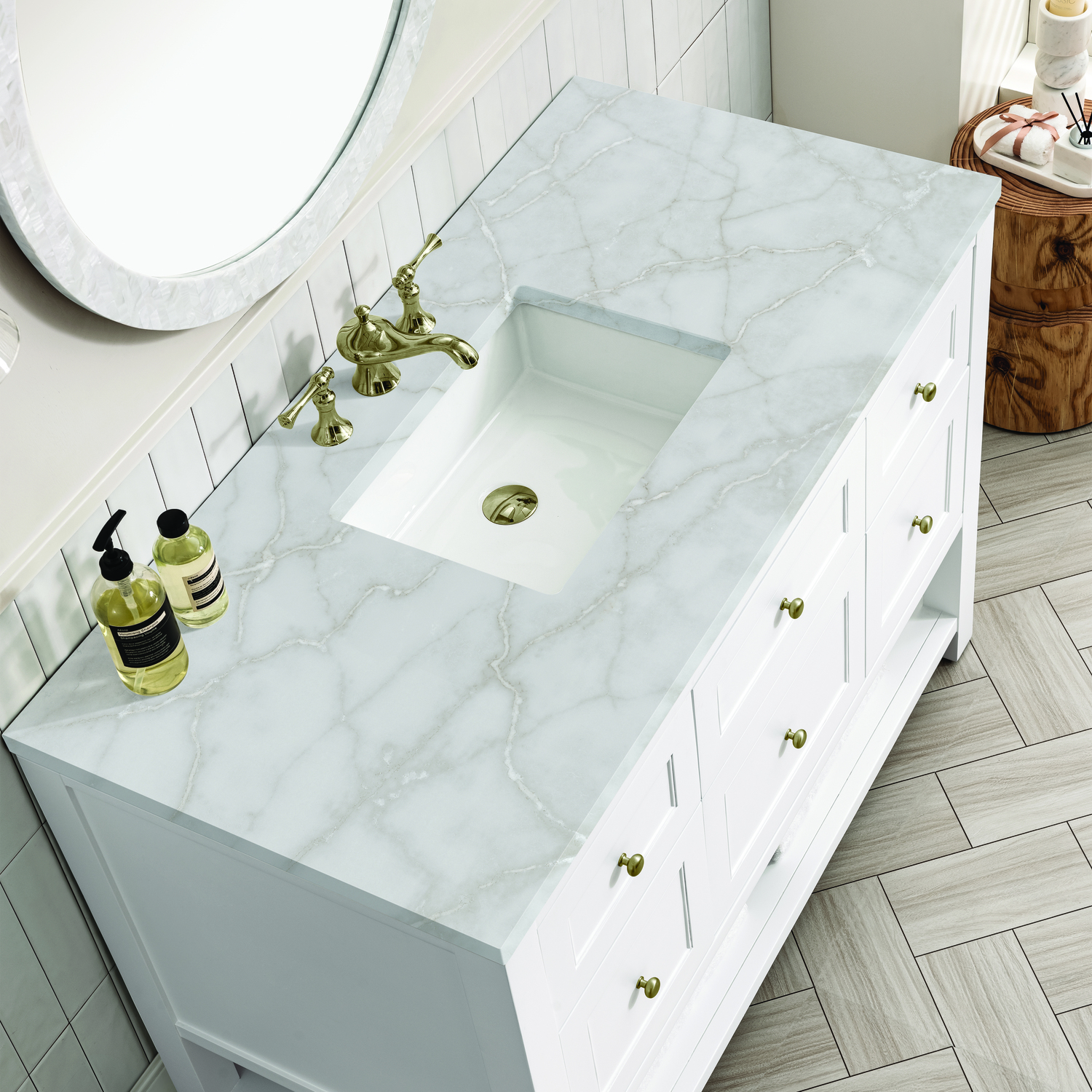 James Martin Breckenridge 48 inch Single Vanity, Bright White w/ 3 CM Victorian Silver Top, 840108966088, 330-V48-BW-3VSL