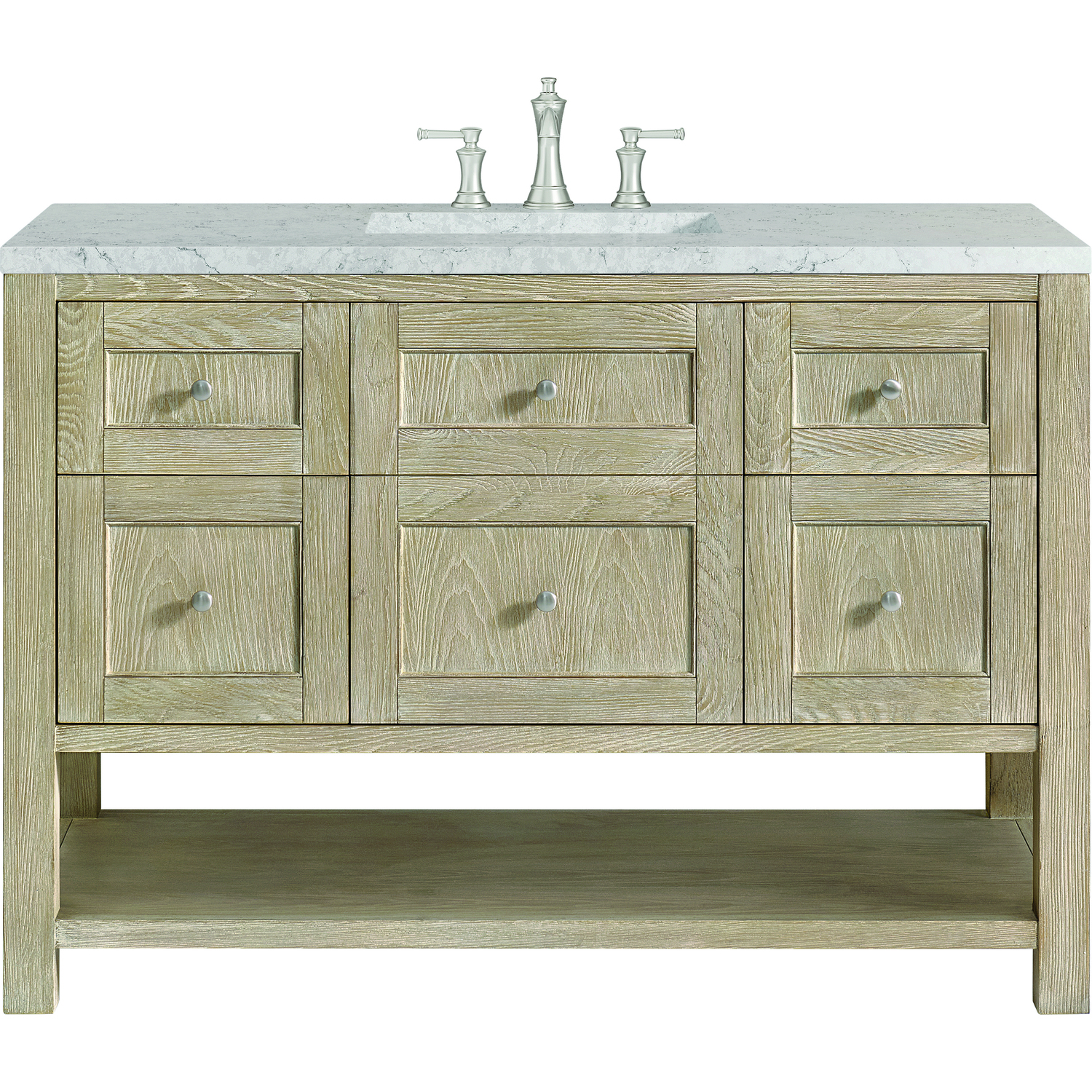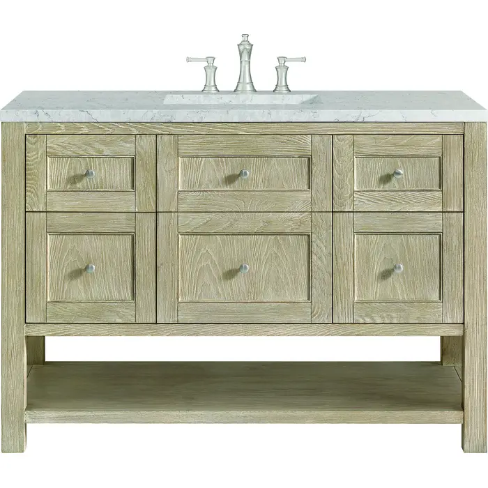 James Martin Breckenridge 48 inch Single Vanity, Whitewashed Oak w/ 3 CM Eternal Jasmine Pearl Silestone Top w/FreePower Wireless Charger, 840467809705, 330-V48-WWO-FEJP