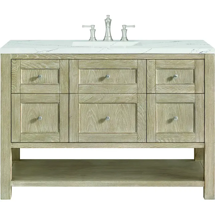 James Martin Breckenridge 48 inch Single Vanity, Whitewashed Oak w/ 3 CM Ethereal Noctis Silestone Top w/FreePower Wireless Charger, 840467809712, 330-V48-WWO-FENC