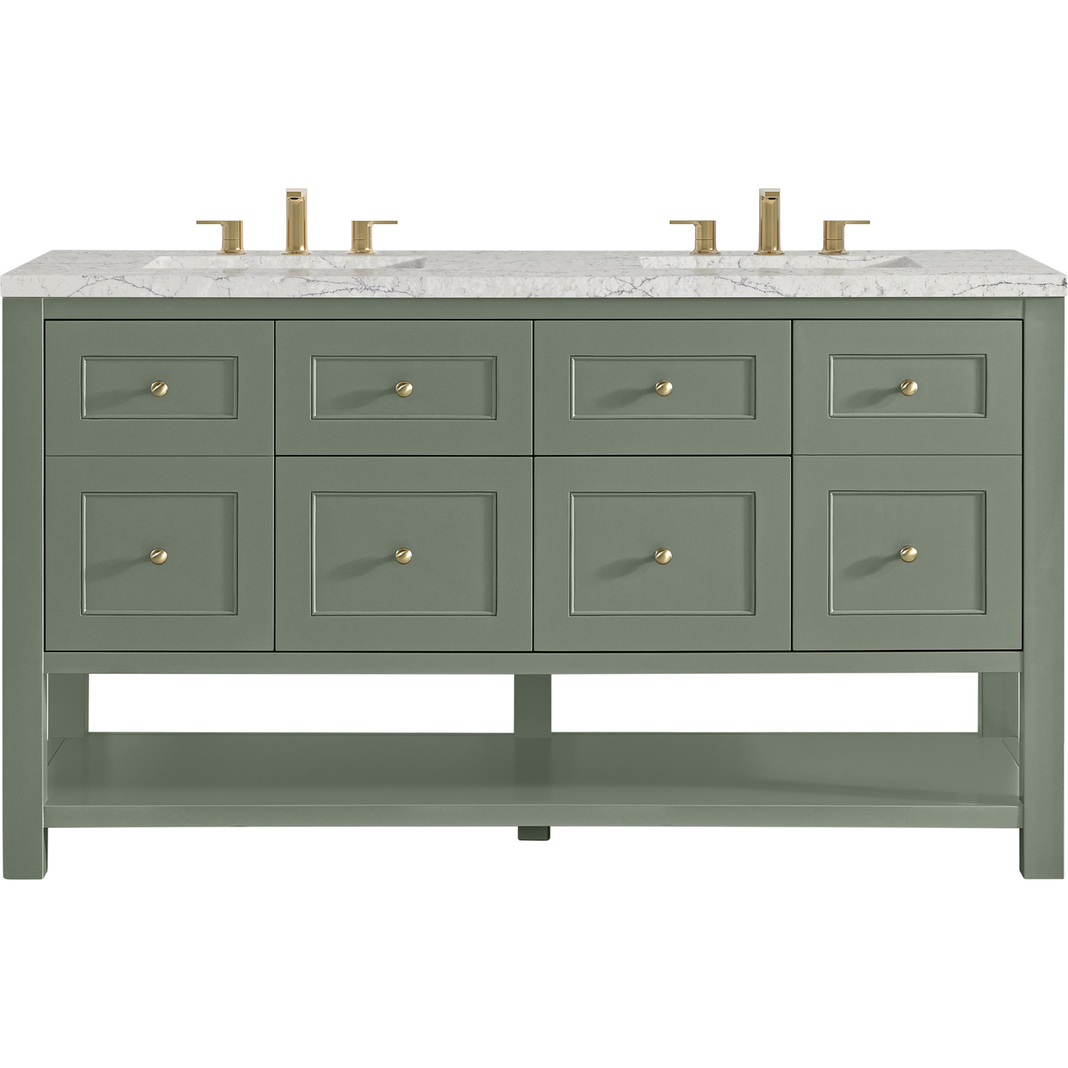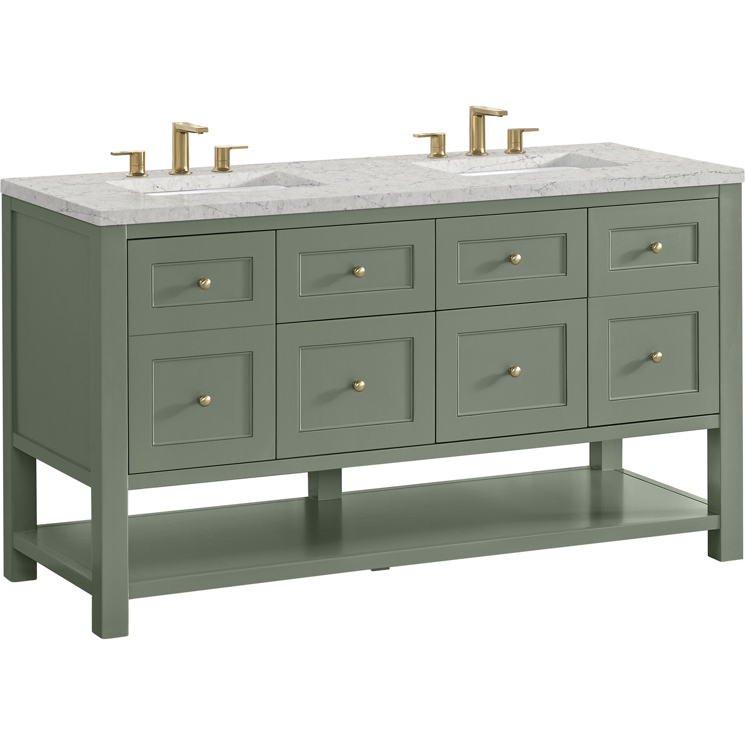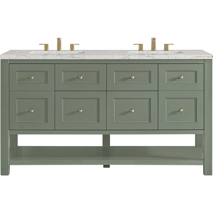 James Martin Breckenridge 60 inch Double Vanity, Smokey Celadon, w/ 3 CM Eternal Jasmine Pearl Quartz Top, 840467800566, 330-V60D-SC-3EJP