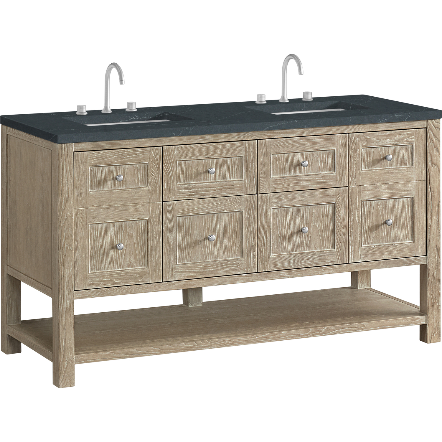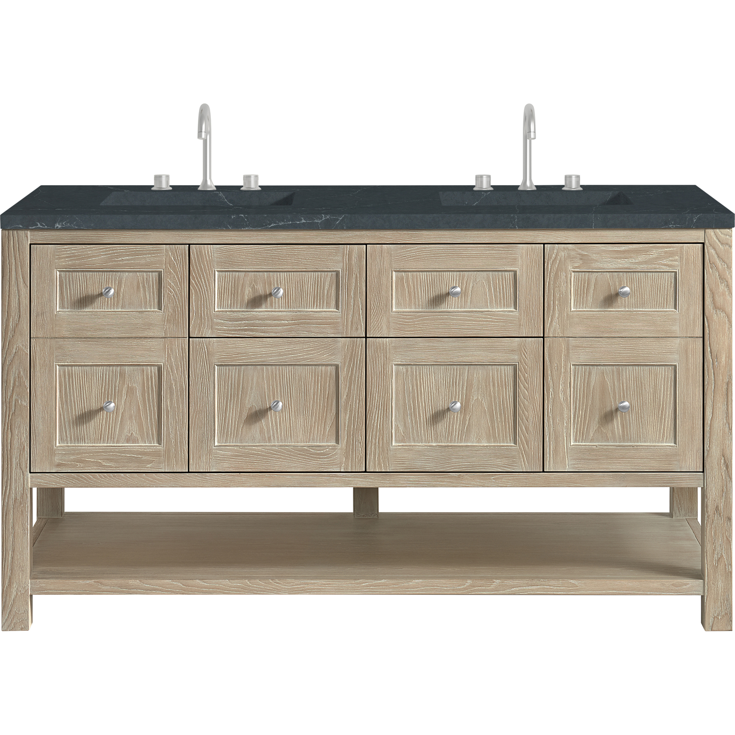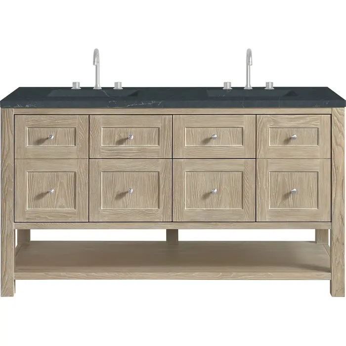 James Martin Breckenridge 60 inch Double Vanity, Whitewashed Oak, w/ 3 CM Charcoal Soapstone Quartz Top, 840467800726, 330-V60D-WWO-3CSP