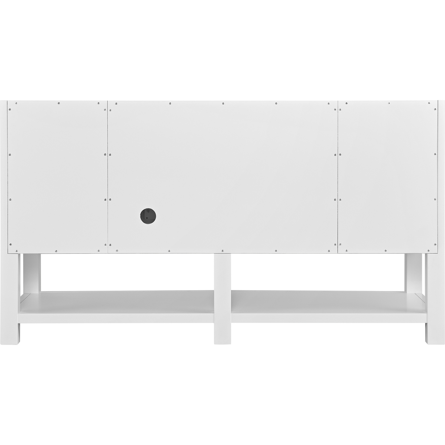 The Breckenridge 60" Single Vanity is a fresh take on traditional Mission furniture that easily transitions to Modern Farmhouse style with an air of understated sophistication. Champagne Brass knobs complement the Bright White finish, while the neatly inset door and drawer fronts lend a fresh appeal to this clean-lined classic. A two-door cabinet opens to reveal an interior shelf equipped with convenient built-in USB/120V power outlet. This console-style vanity also features four full-extension drawers and an open lower shelf for additional storage. Complete the look with one of our 3 cm tops.Two-door cabinet with one adjustable interior shelf and four full-extension drawersDrawer boxes feature English Dovetail joinery with premium, soft-close undermount drawer slides; doors feature soft-close, adjustable door hingesCabinet features a multi-stage premium finish coat to offer UV and moisture resistanceBright White finish with Champagne Brass hardwareCabinet only; select one of our countertops to complete the vanityIntegrated 120V outlet with USB portsDrawers lined with our signature brushed aluminum laminate for easy cleaningFreestanding VanityA fresh take on traditional Mission furniture, the Breckenridge Collection easily transitions to Modern Farmhouse style with an air of understated sophistication. This console-style vanity has an integrated open shelf for additional storage, neatly inset door and drawer fronts to maintain the symmetry of the Shaker aesthetic, and coordinating knobs that complement each of the available finishes. With clean lines and a chic design, this vanity is destined to become a classic.1 year warranty against manufacturer's defects. We will repair or replace any defective product, if the product is defective in material or workmanship at our discretion. No warranty is expressed or implied regarding damages resulting from consumer misuse.