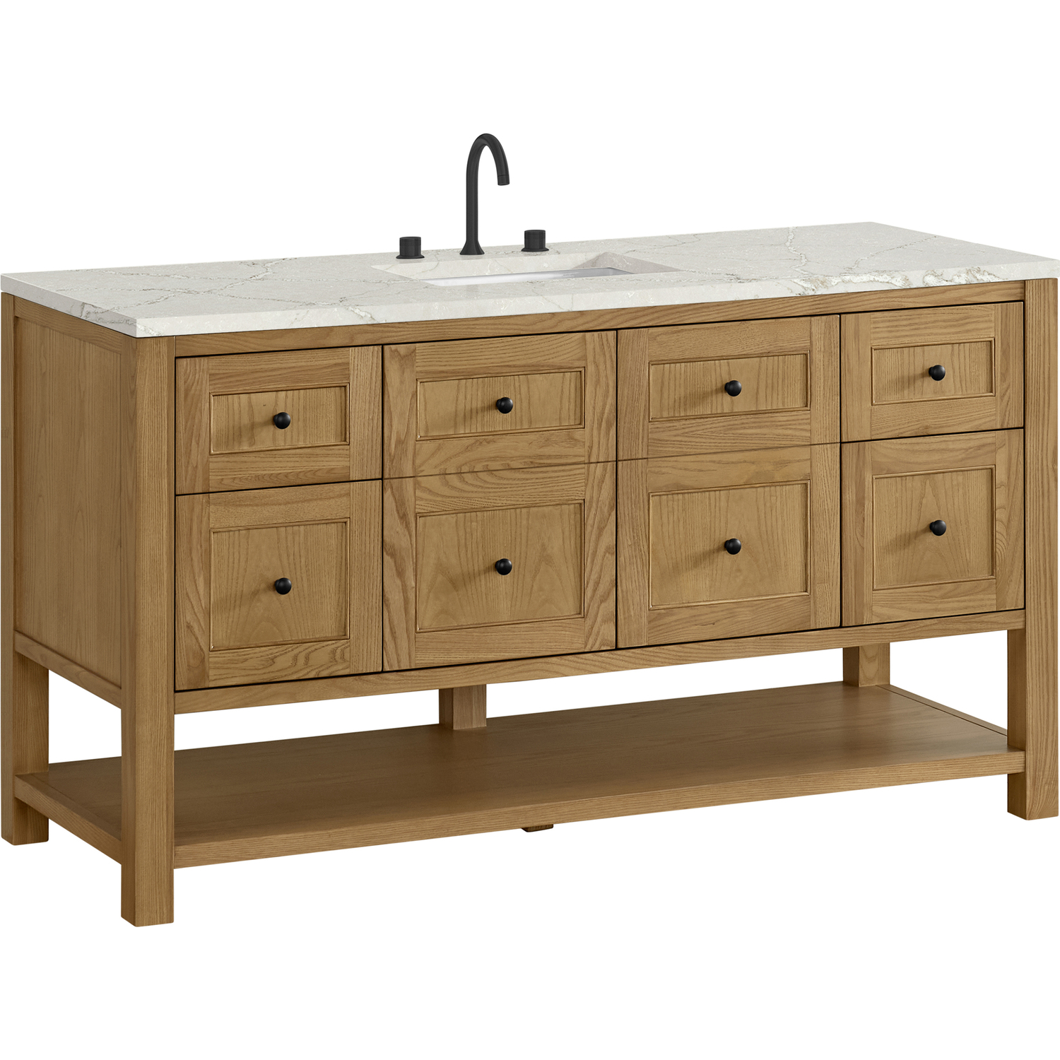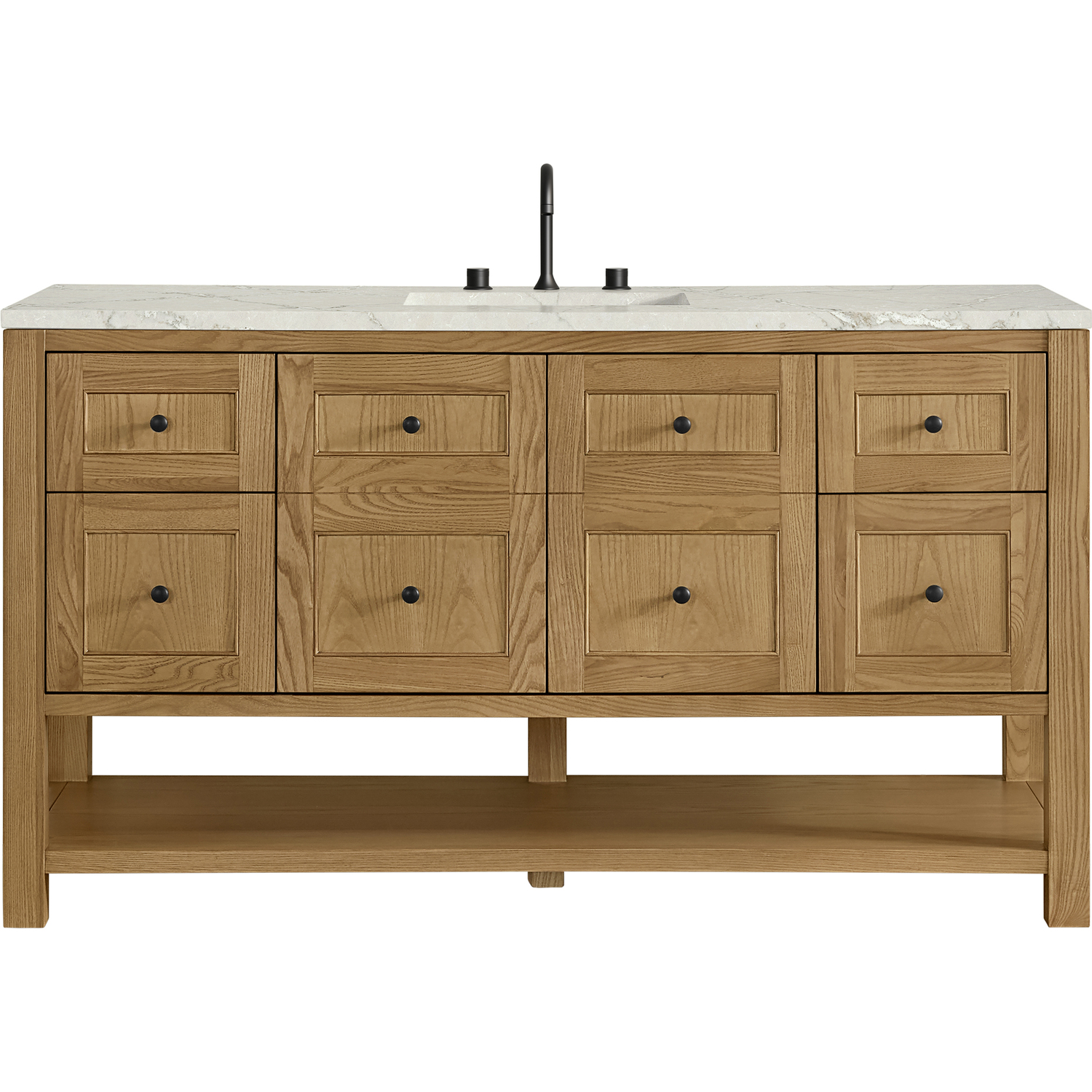 James Martin Breckenridge 60 inch Single Vanity, Light Natural Oak, w/ 3 CM Victorian Silver Quartz Top, 840467800948, 330-V60S-LNO-3VSL