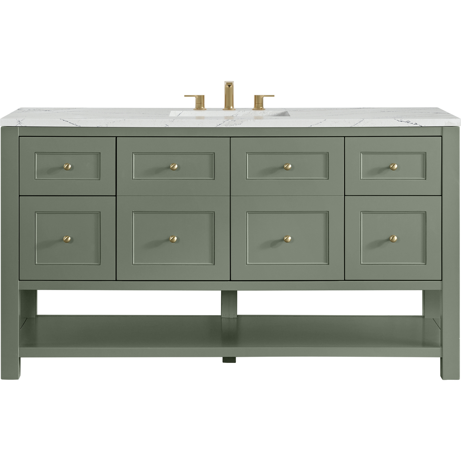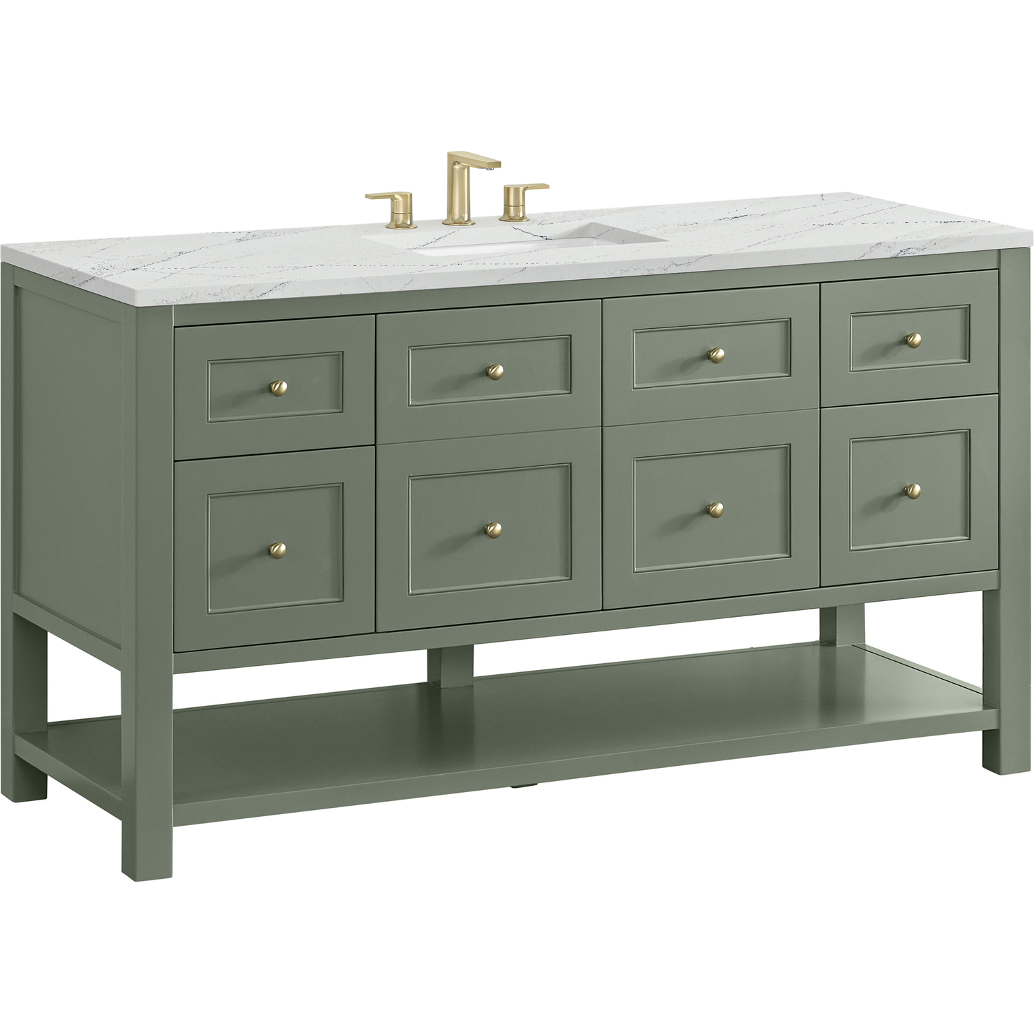 James Martin Breckenridge 60 inch Single Vanity, Smokey Celadon, w/ 3 CM Ethereal Noctis Quartz Top, 840467801013, 330-V60S-SC-3ENC