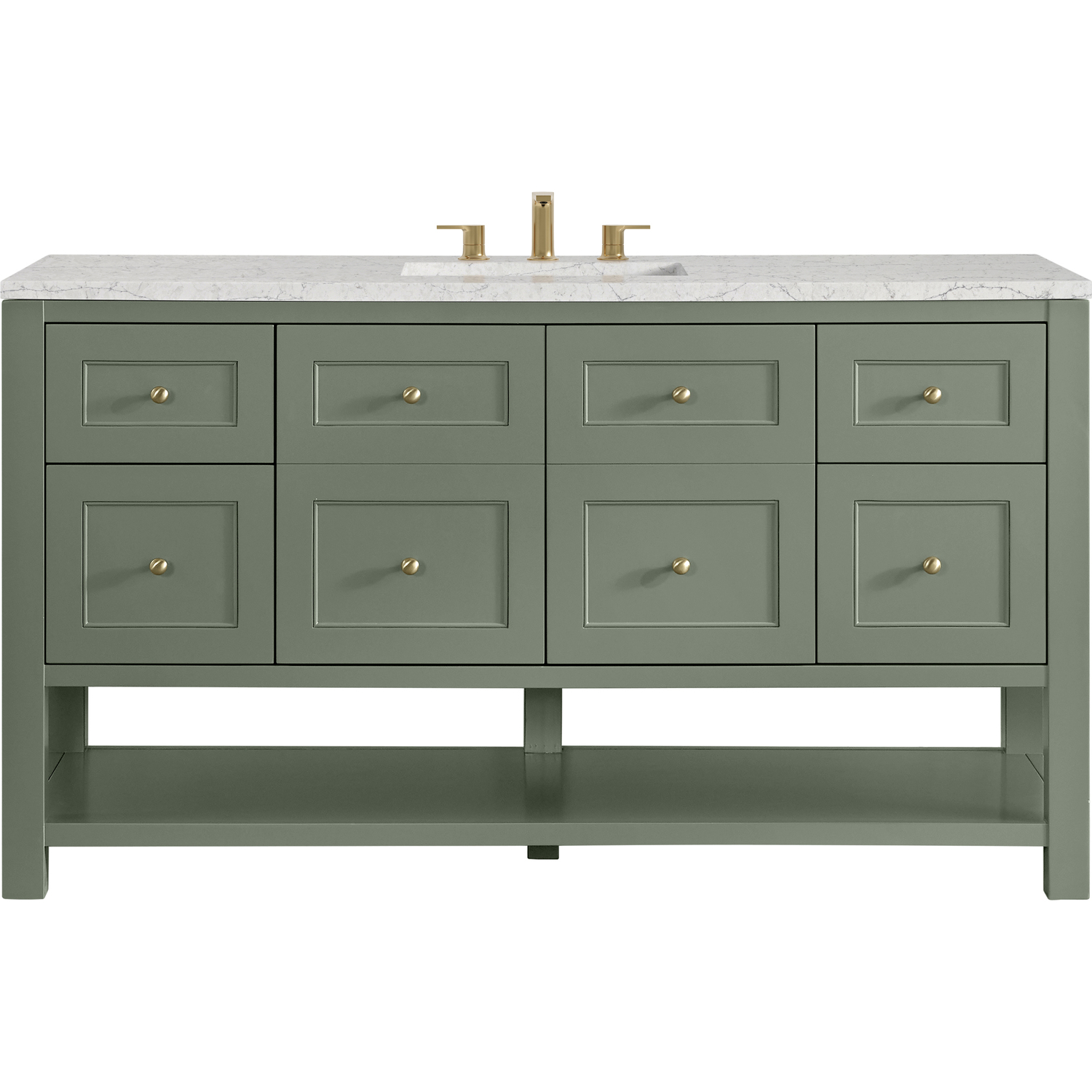 James Martin Breckenridge 60 inch Single Vanity, Smokey Celadon, w/ 3 CM Eternal Jasmine Pearl Silestone Top w/ FreePower Wireless Charger, 840467807060, 330-V60S-SC-FEJP