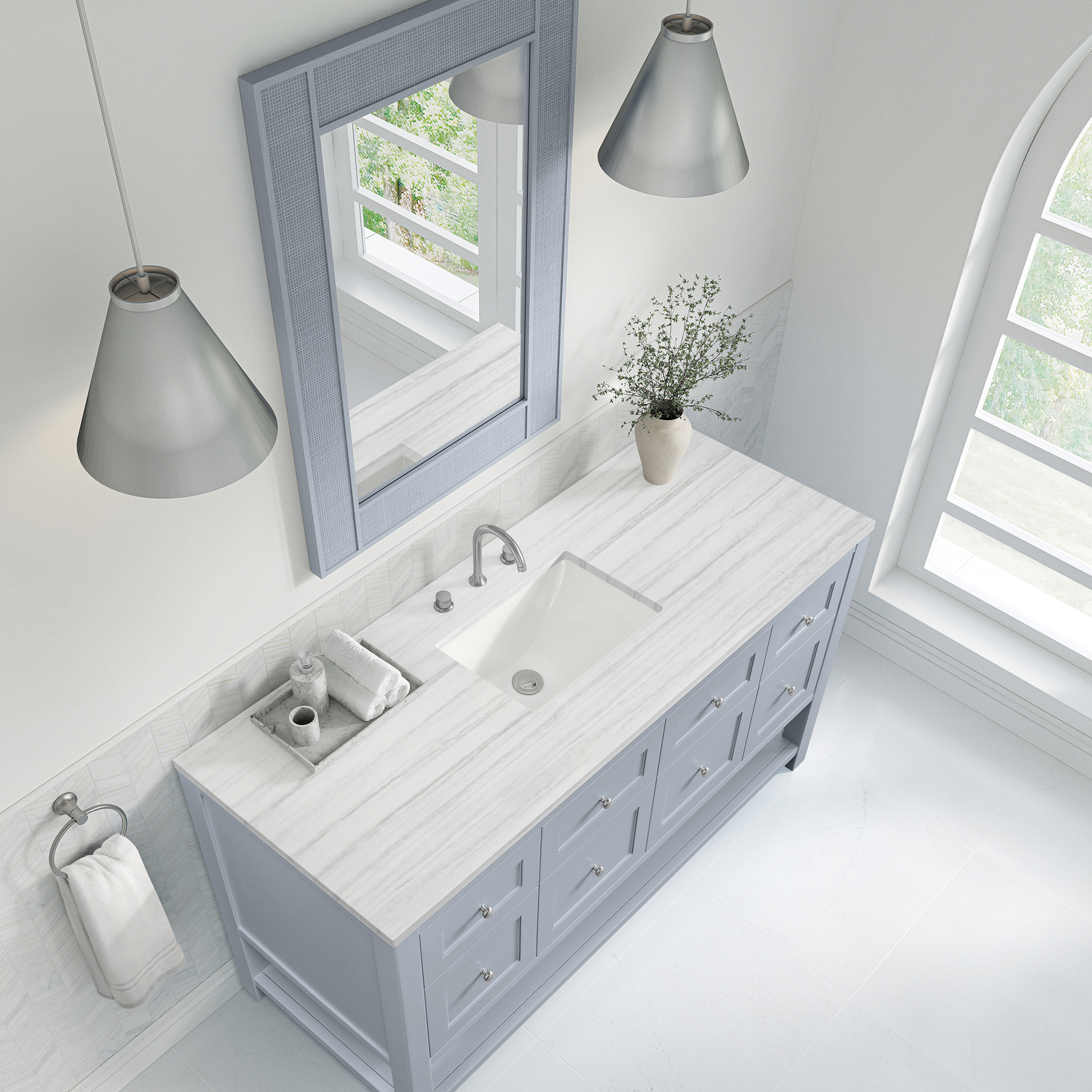 James Martin Breckenridge 60 inch Single Vanity, Serenity Blue, w/ 3 CM Arctic Fall Solid Surface Top, 840467801051, 330-V60S-SRB-3AF