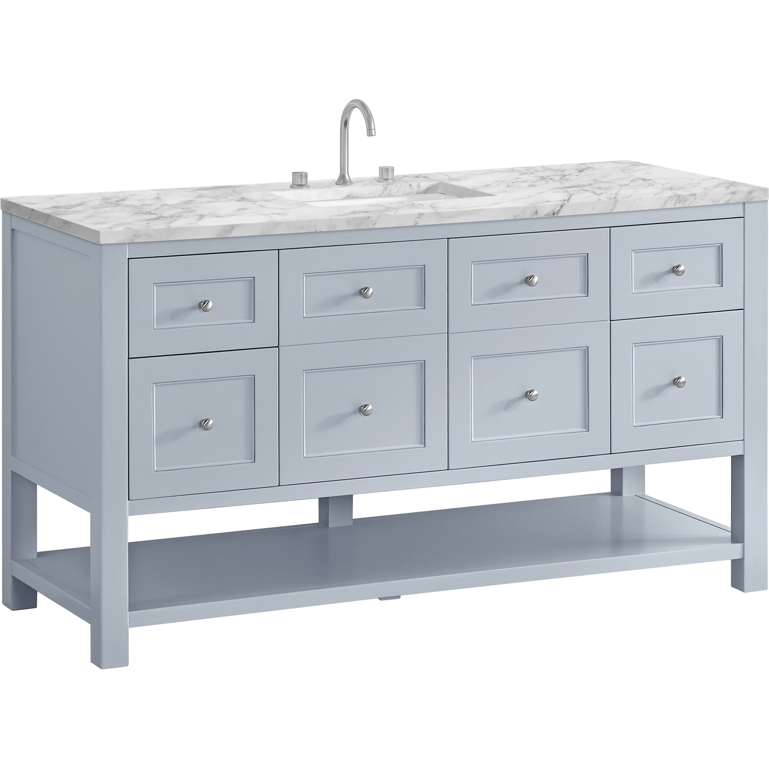 James Martin Breckenridge 60 inch Single Vanity, Serenity Blue, w/ 3 CM Carrara Marble Top, 840467801068, 330-V60S-SRB-3CAR
