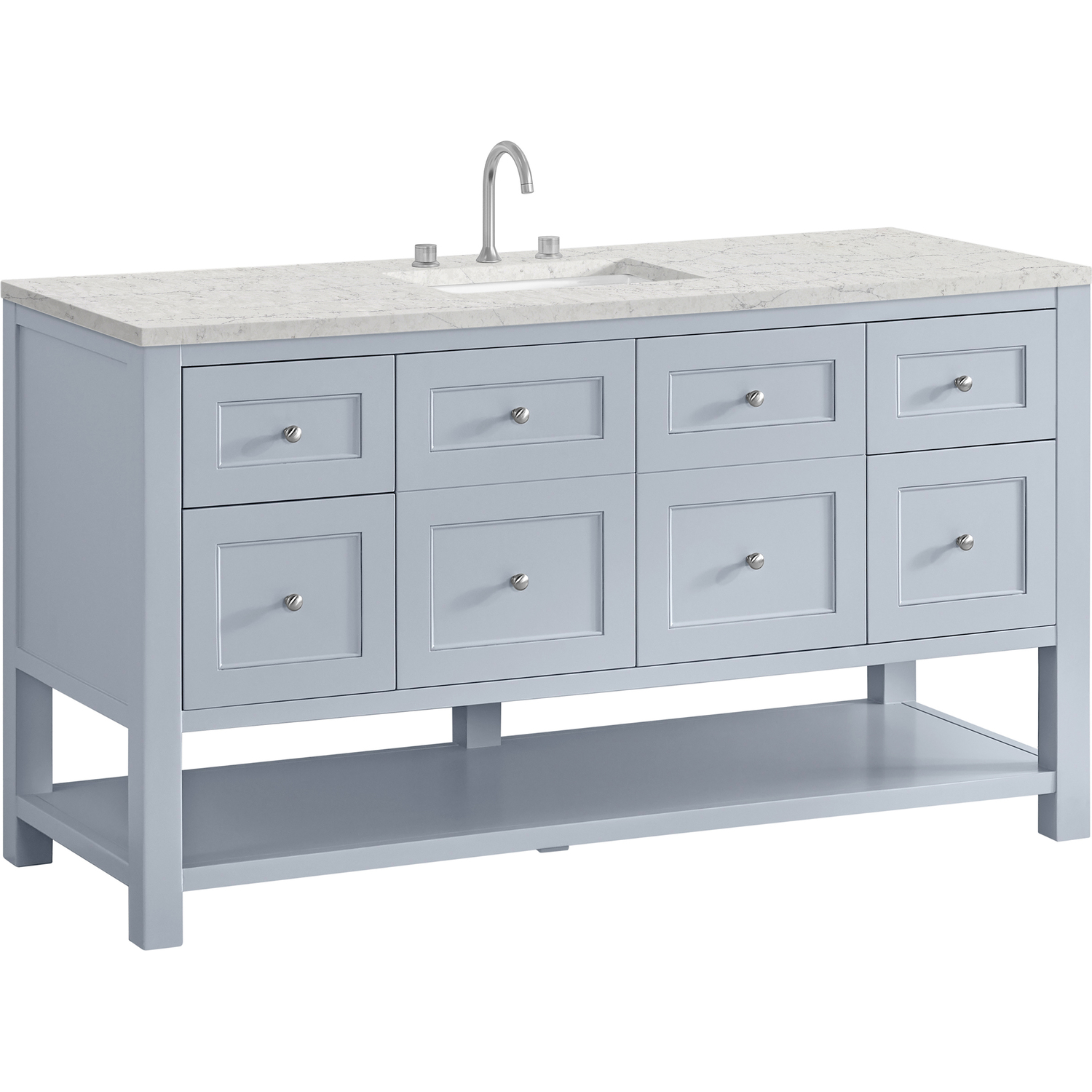 James Martin Breckenridge 60 inch Single Vanity, Serenity Blue, w/ 3 CM Eternal Jasmine Pearl Quartz Top, 840467801082, 330-V60S-SRB-3EJP