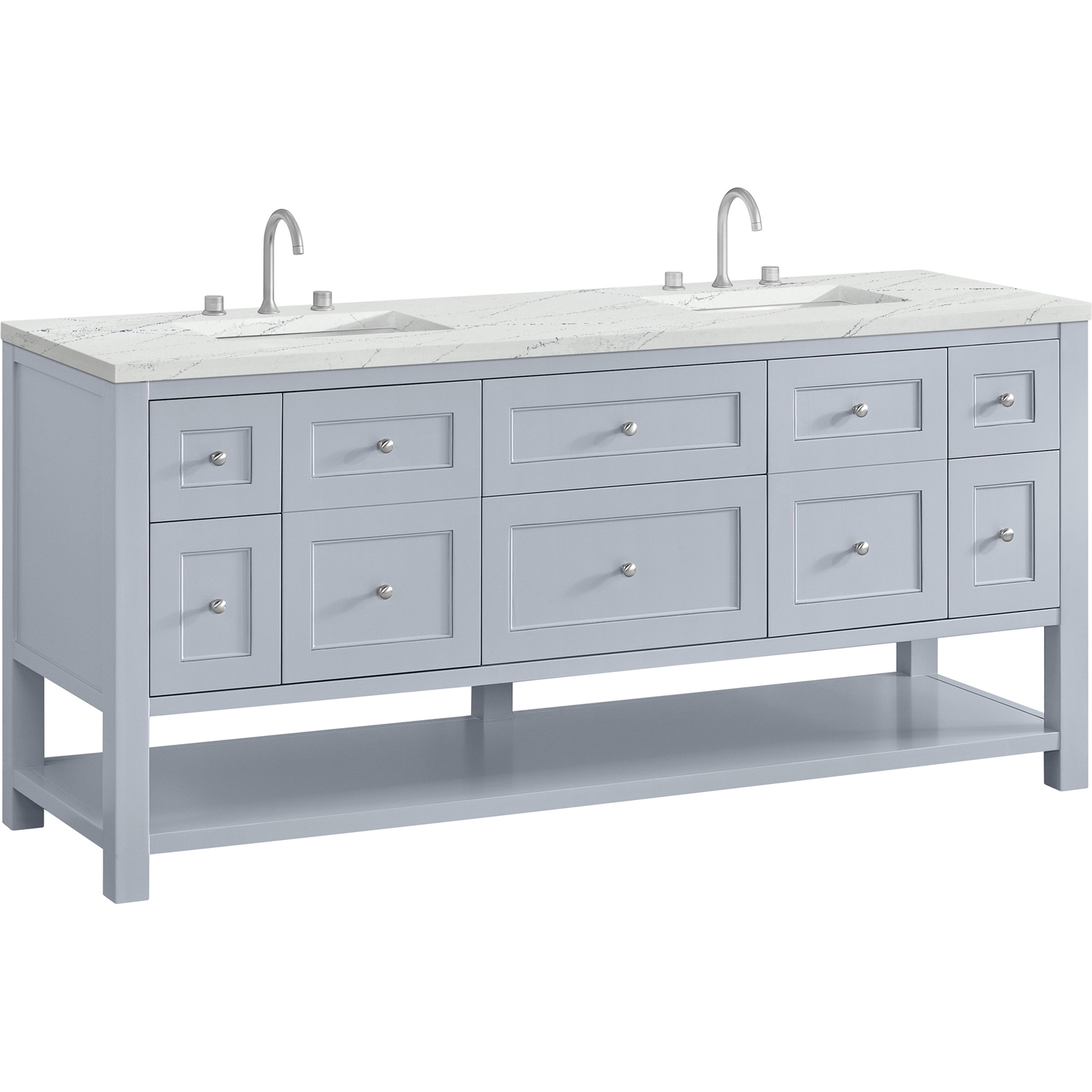 James Martin Breckenridge 72 inch Double Vanity, Serenity Blue, w/ 3 CM Ethereal Noctis Quartz Top, 840467801273, 330-V72-SRB-3ENC