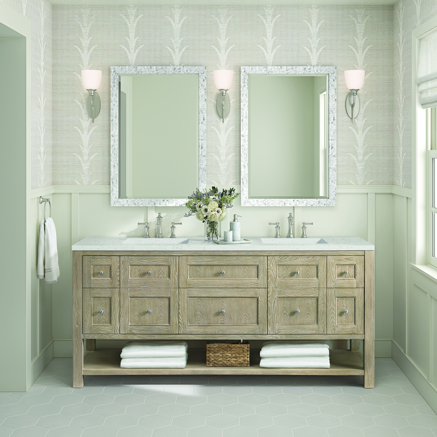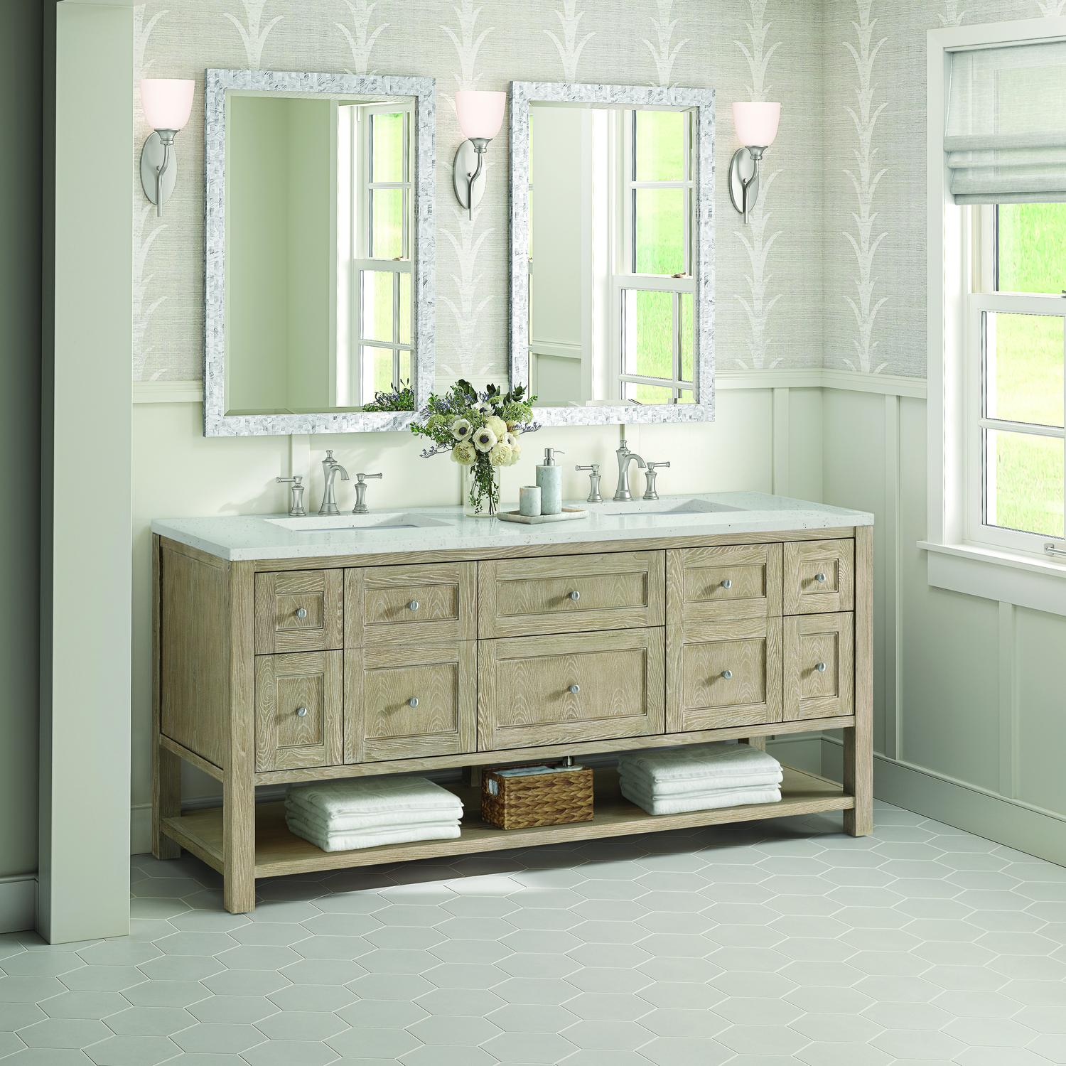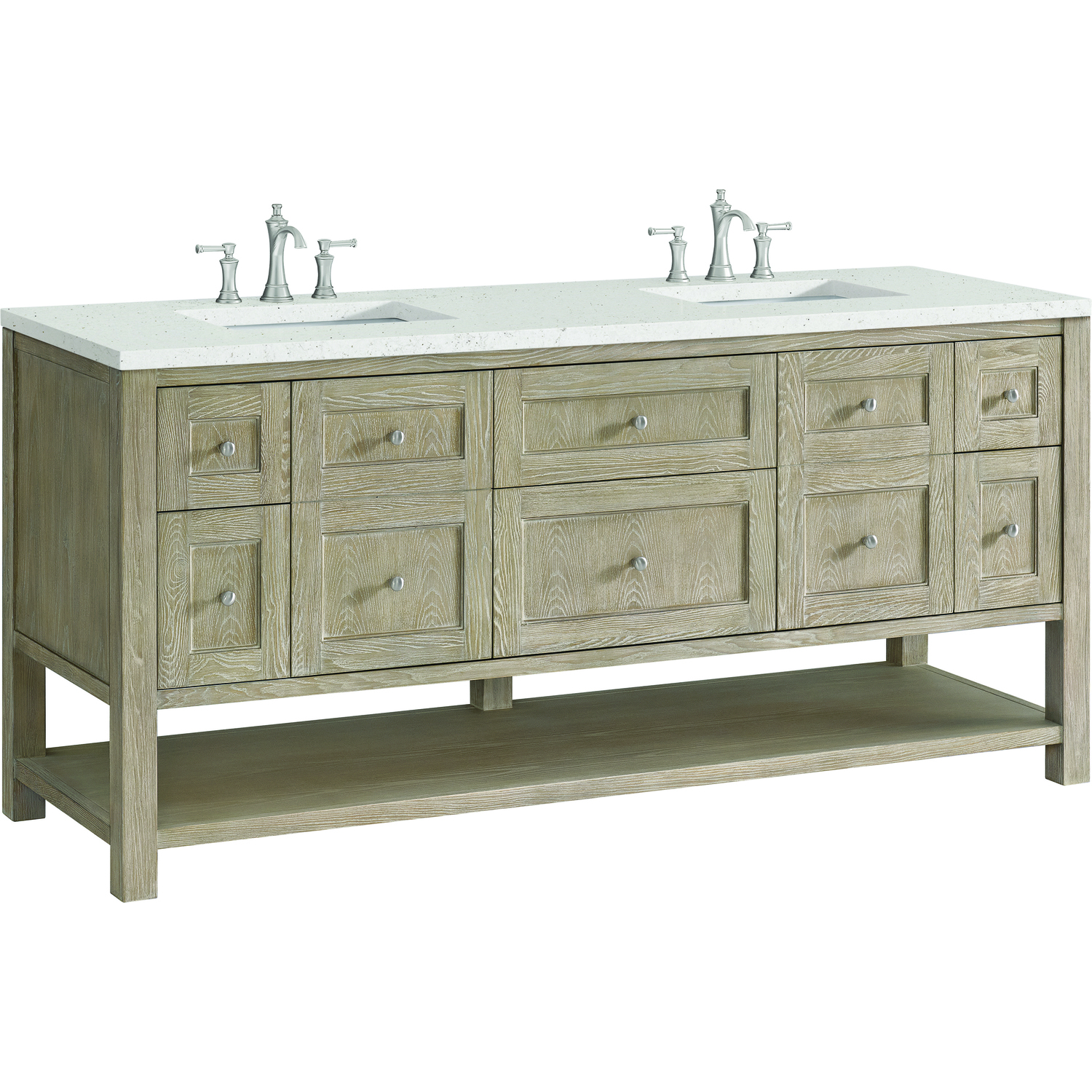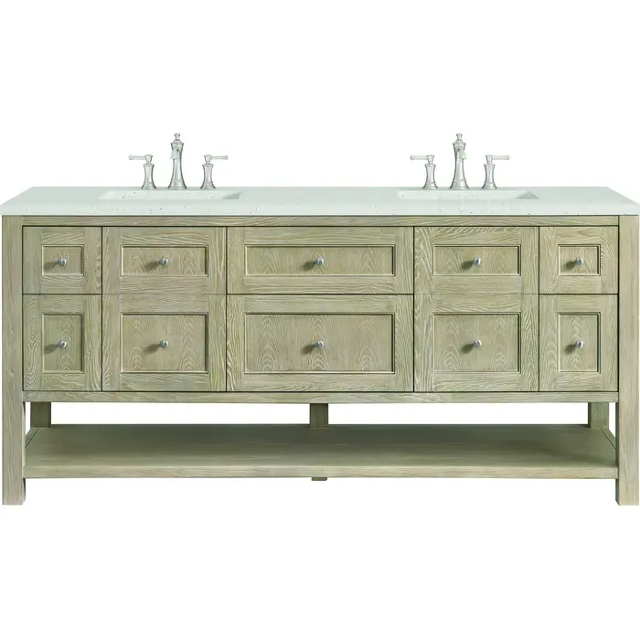 James Martin Breckenridge 72 inch Double Vanity, Whitewashed Oak w/ 3 CM Lime Delight Quartz Top, 840108971020, 330-V72-WWO-3LDL
