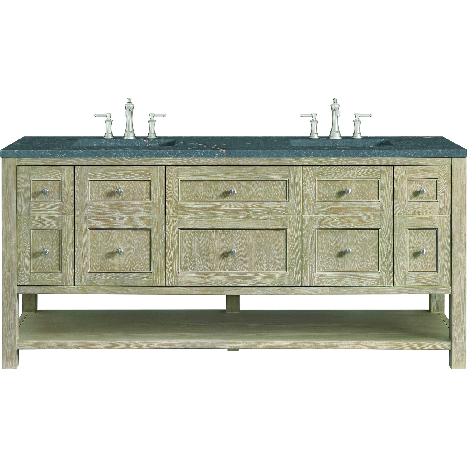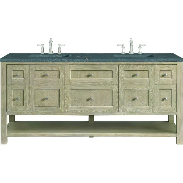 James Martin Breckenridge 72 inch Double Vanity, Whitewashed Oak w/ 3 CM Parisien Bleu Silestone Top w/FreePower Wireless Charger, 840467810107, 330-V72-WWO-FPBL