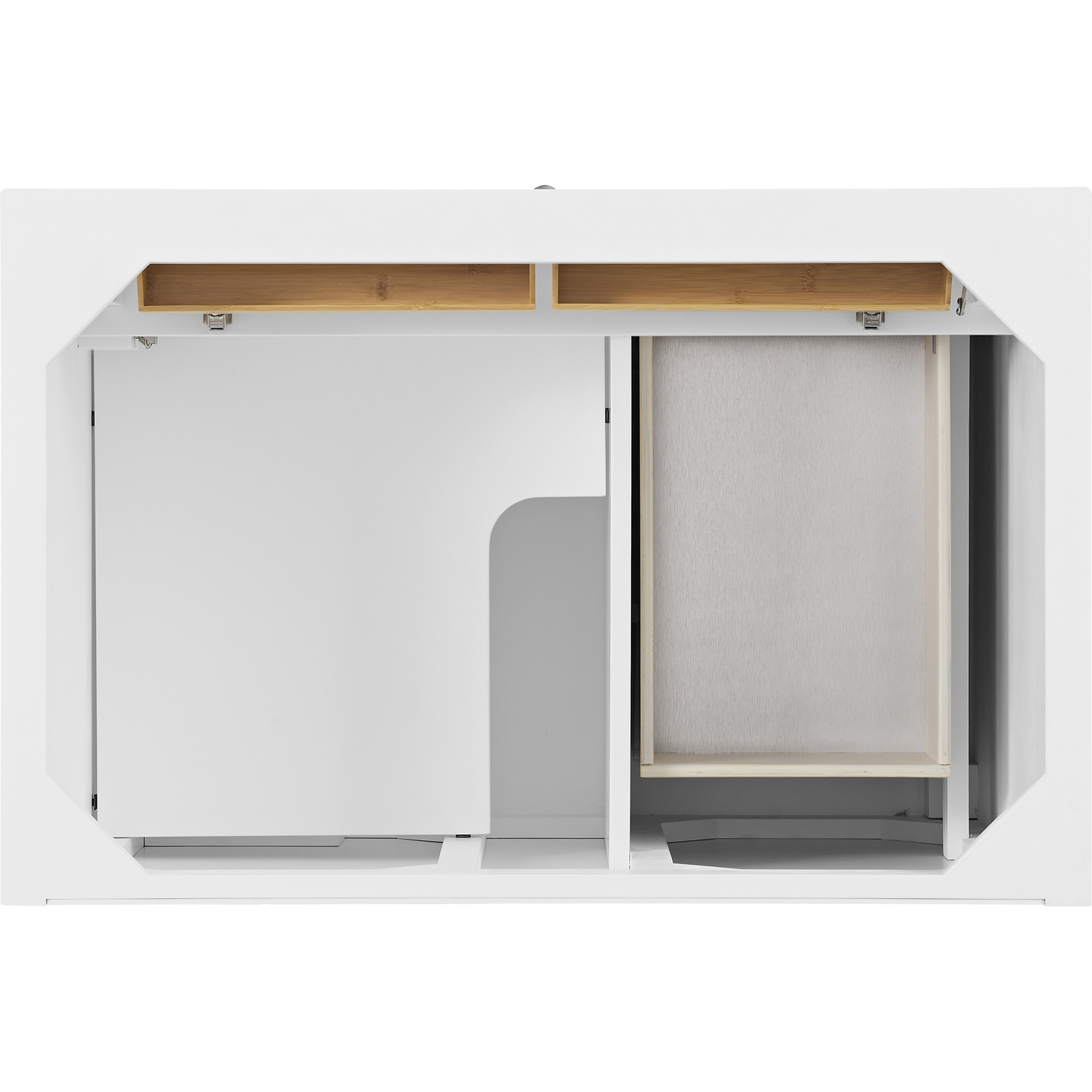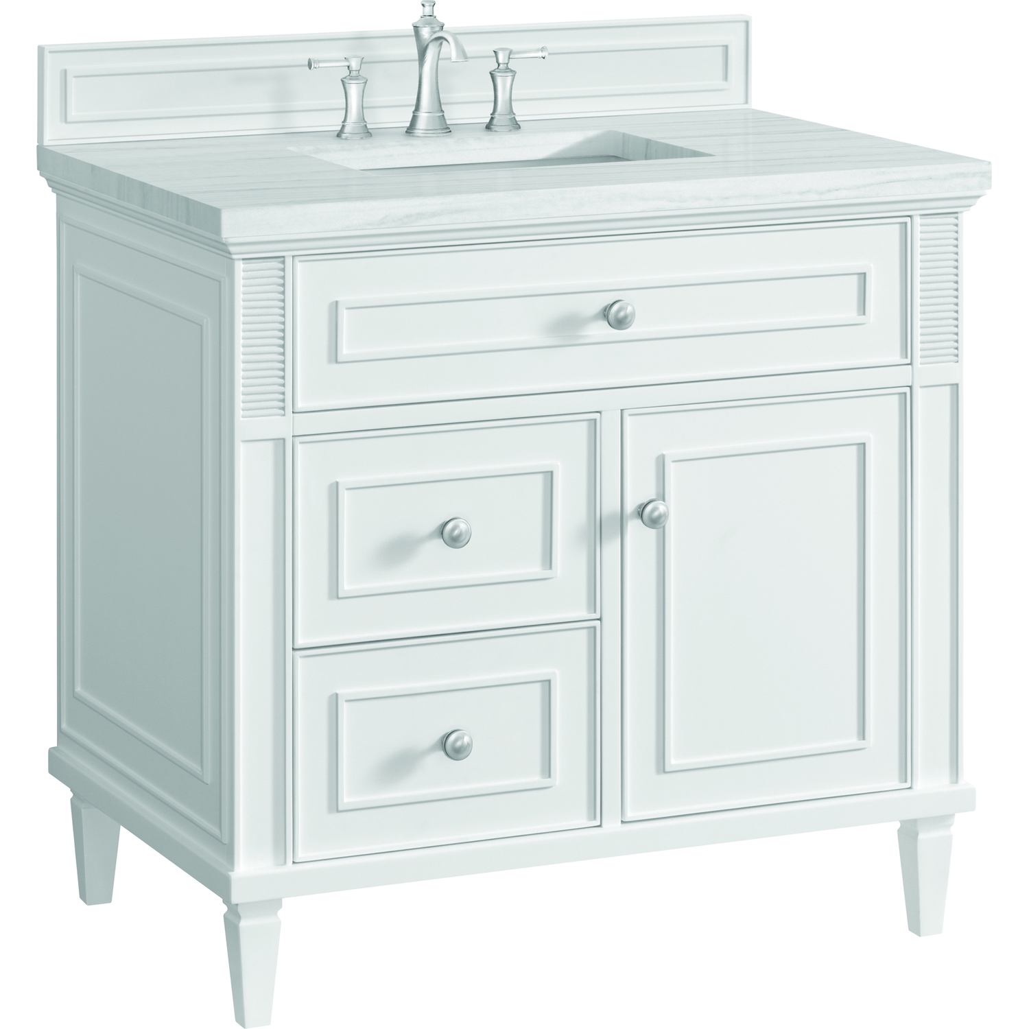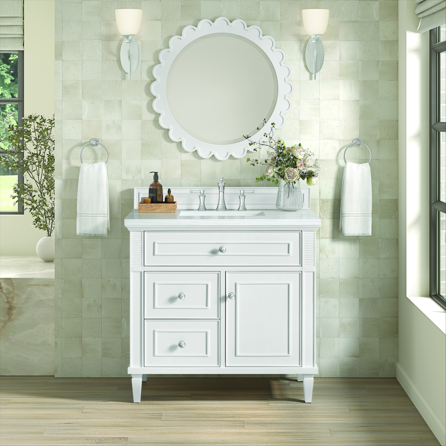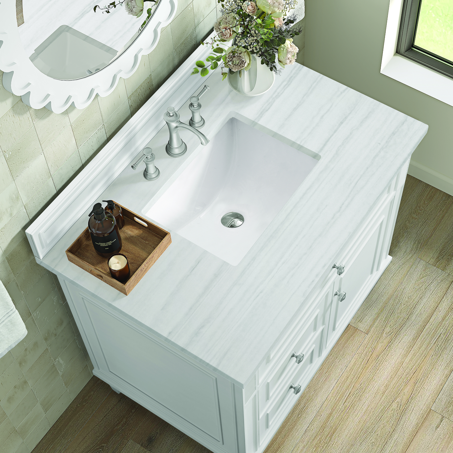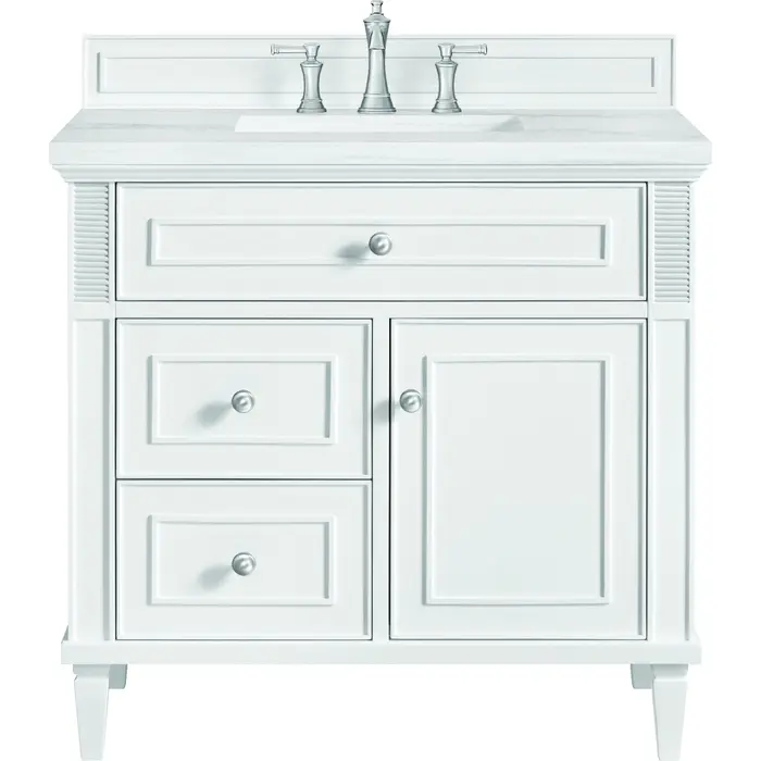 James Martin Lorelai 36 inch Single Vanity, Bright White w/ 3 CM Arctic Fall Solid Surface Top, 840108971174, 424-V36-BW-3AF