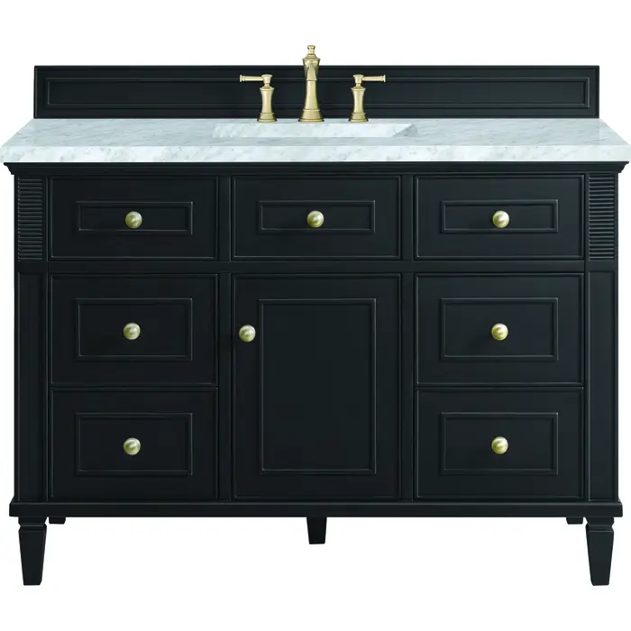 James Martin Lorelai 48 inch Single Vanity, Black Onyx w/ 3 CM Carrara White Marble Top, 840108971624, 424-V48-BKO-3CAR