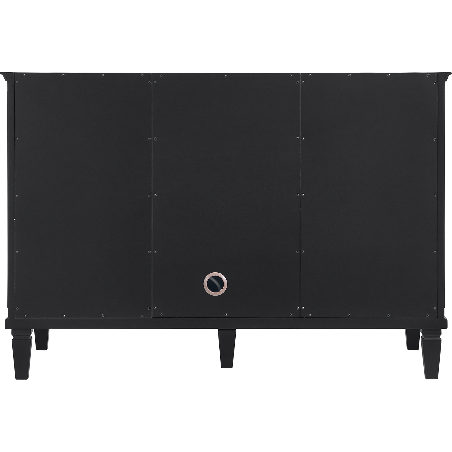 The 48" Lorelai Single Vanity celebrates timeless form and exquisite finish details, combined with practical function. The rich Black Onyx finish is accented by coin-edge knobs in Champagne Brass which provides an sophisticated contrast. Reeded details, aCabinet only - select one of our coordinating 3cm tops, which includes an undermount, white porcelain sinkSolid wood frame with plywood panels and sealed with our premium moisture and UV resistant coatingsOne 120-volt UL rated electric outlet with USB ports and bamboo organizer includedOne tip-out drawer, six drawers, and one door that opens to an interior shelfRound, coin-edge hardware in a Champagne Brass finishDrawer boxes feature English Dovetail joinery, premium undermount soft-close glides, and brushed aluminum laminate drawer liners for easy cleaningDoor features adjustable soft-close door hingesExquisitely crafted, the Lorelai collection is a testament to timeless, versatile design. With reeded accents and clean, raised picture frame details, each piece in this collection effortlessly adds visual interest to your space. The subtle elegance of co1 year warranty against manufacturer's defects. We will repair or replace any defective product, if the product is defective in material or workmanship at our discretion. No warranty is expressed or implied regarding damages resulting from consumer misuse.