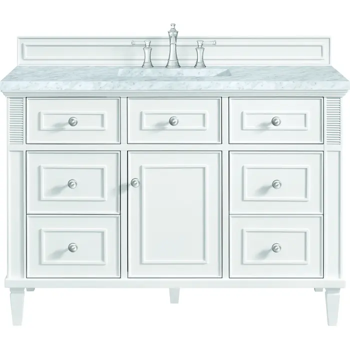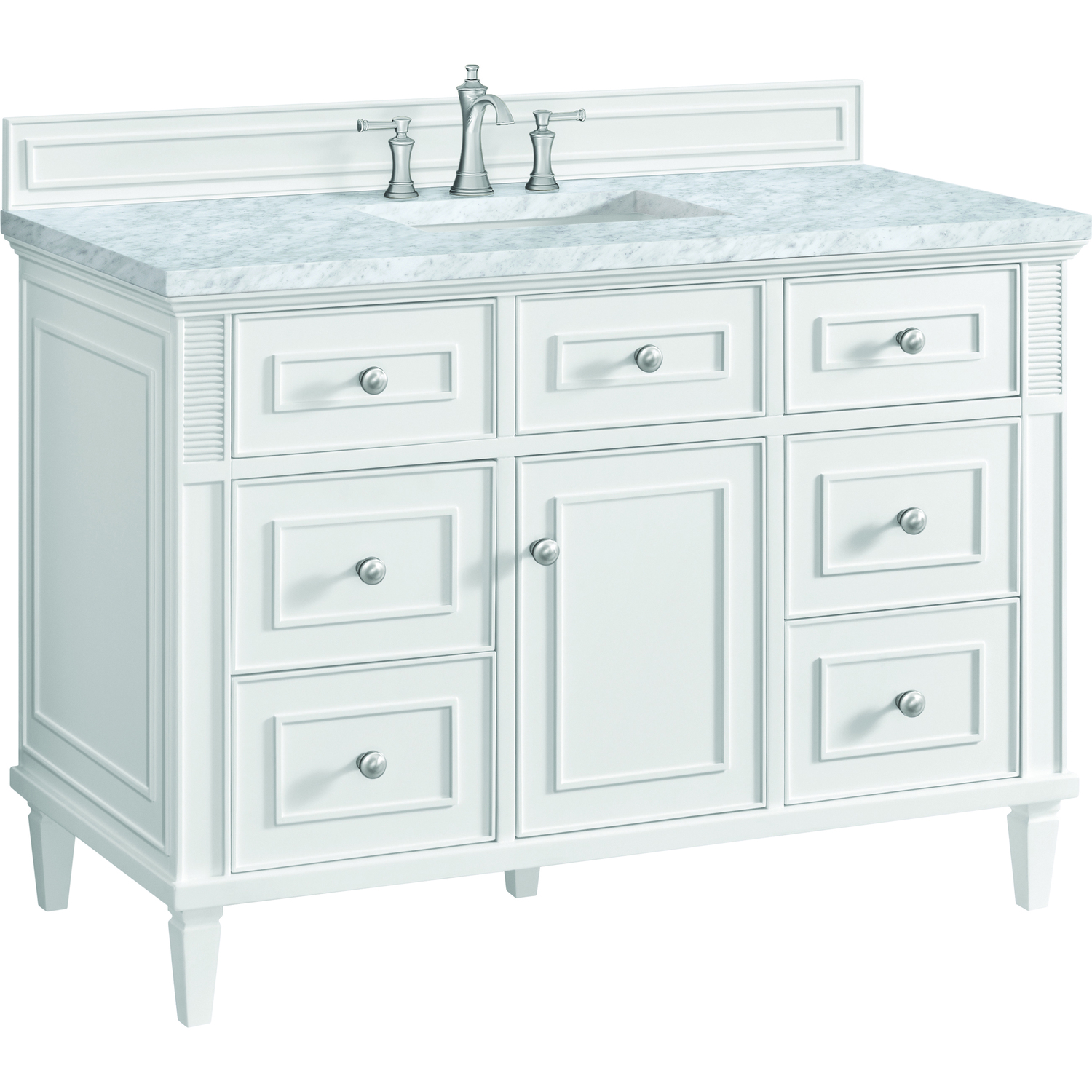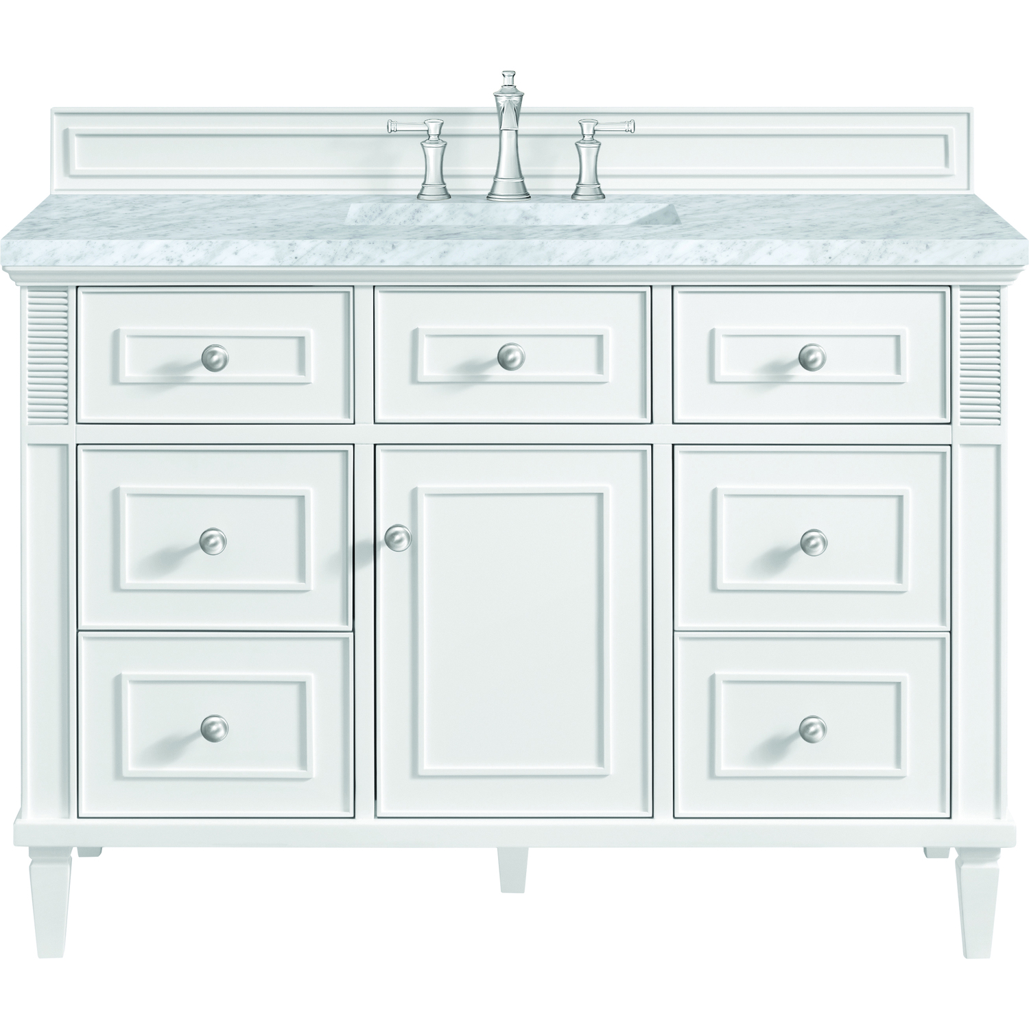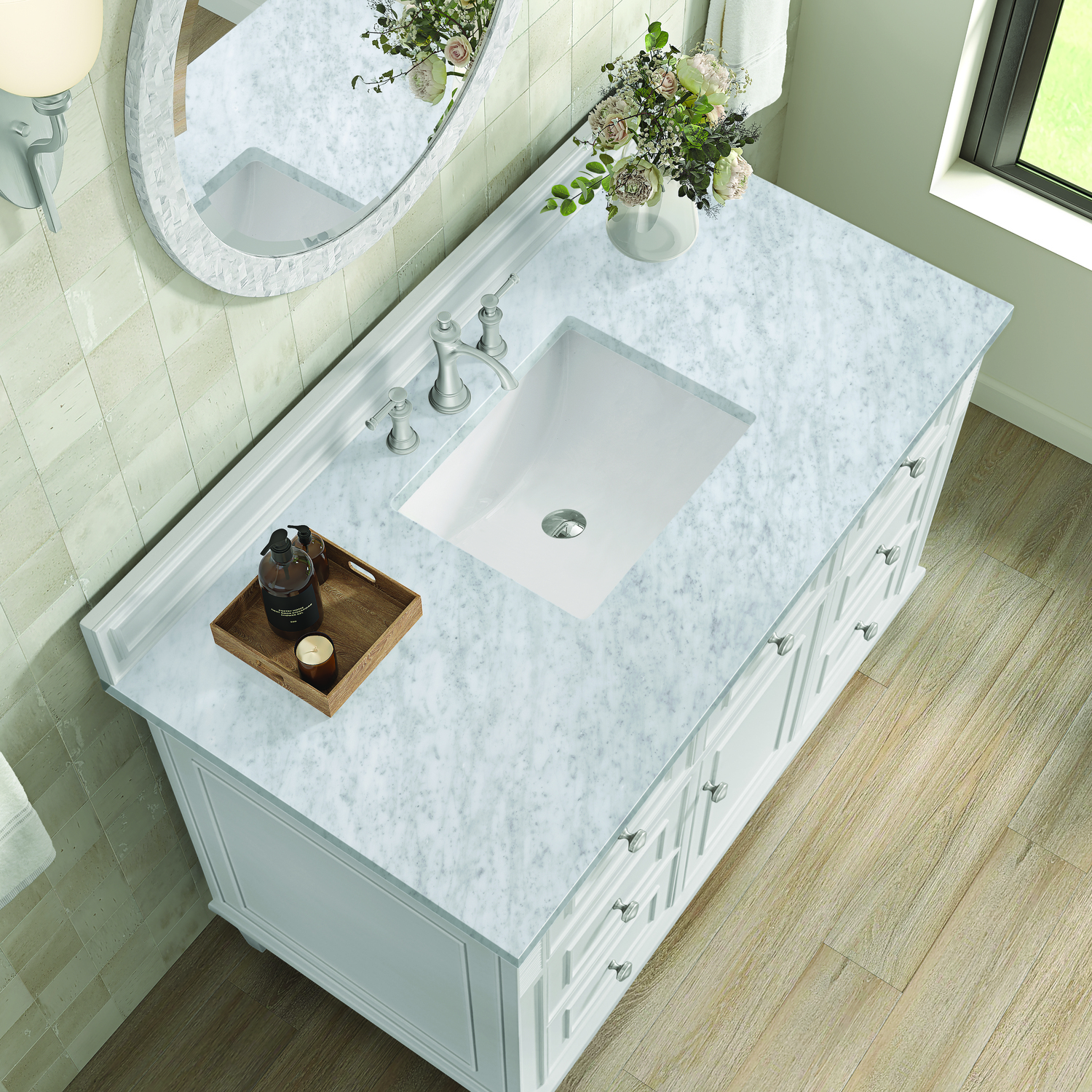 James Martin Lorelai 48 inch Single Vanity, Bright White w/ 3 CM Carrara White Marble Top, 840108971730, 424-V48-BW-3CAR