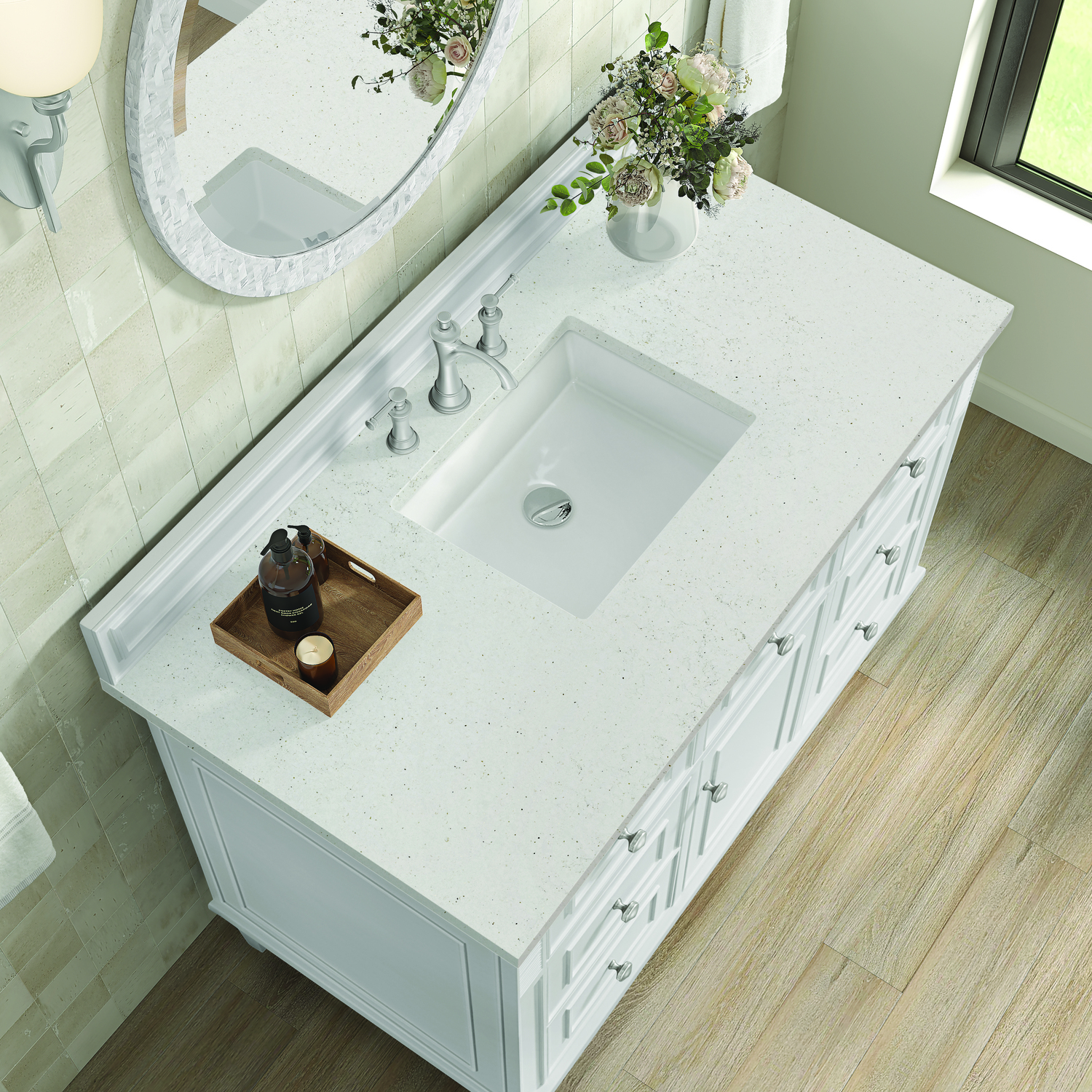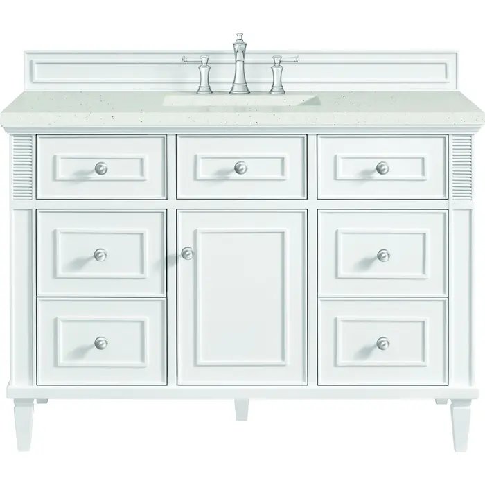 James Martin Lorelai 48 inch Single Vanity, Bright White w/ 3 CM Lime Delight Quartz Top, 840108971822, 424-V48-BW-3LDL