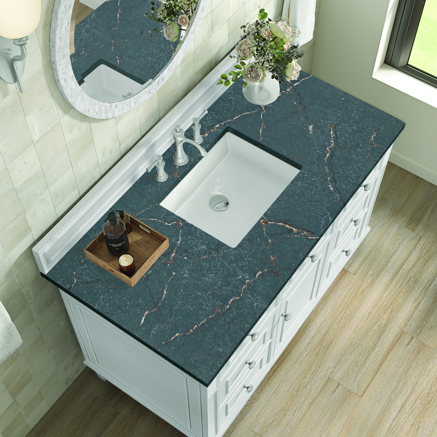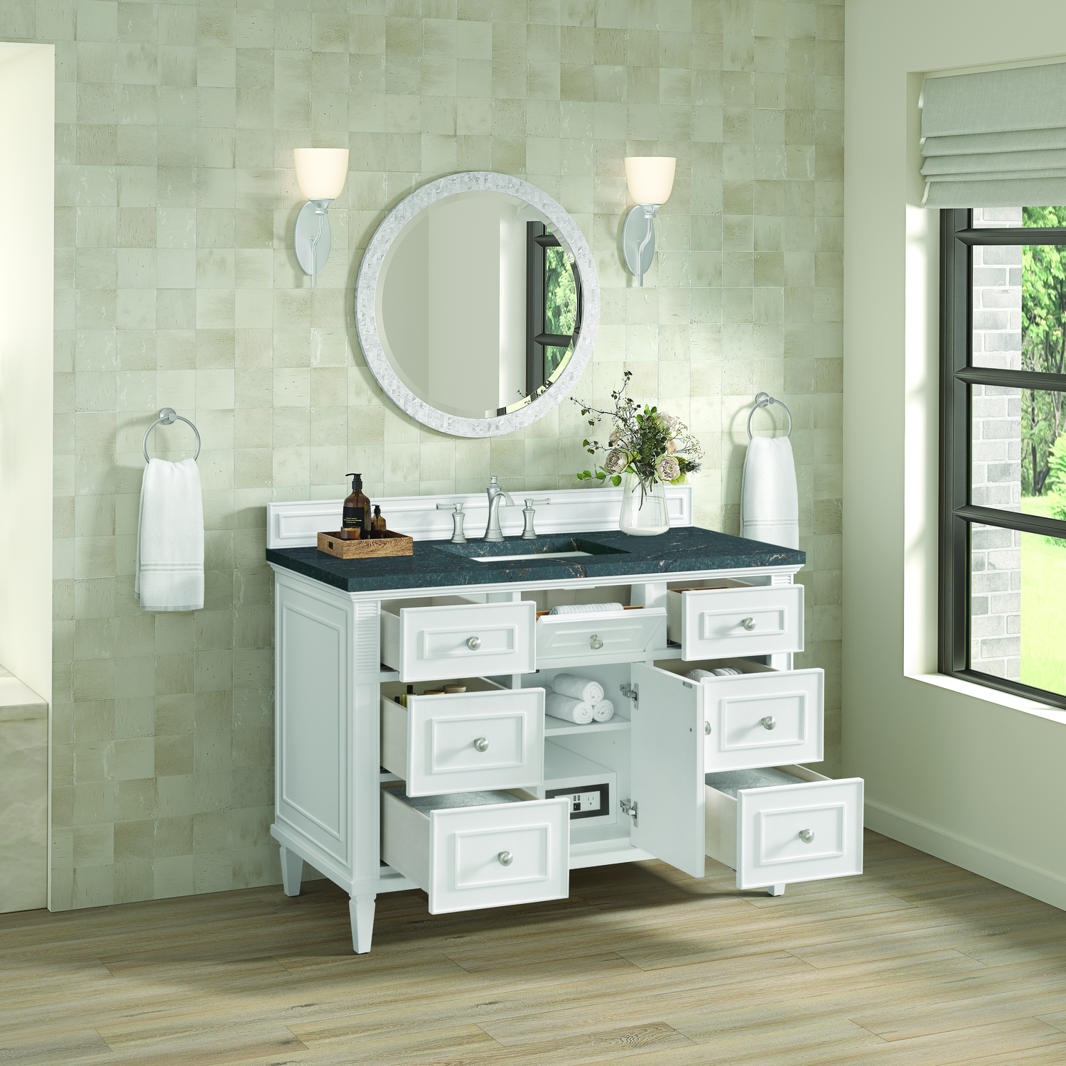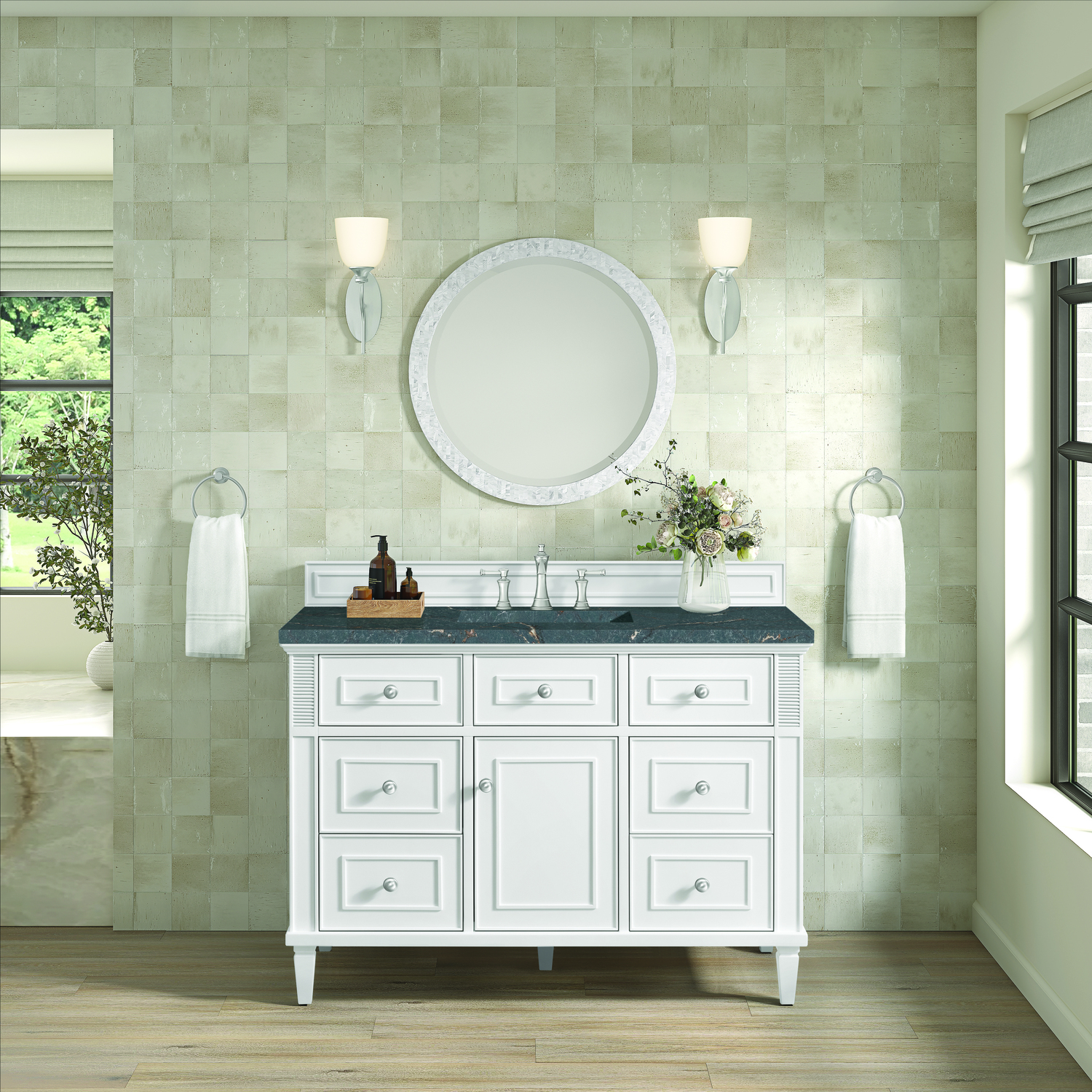 James Martin Lorelai 48 inch Single Vanity, Bright White w/ 3 CM Parisien Bleu Quartz Top, 840108971808, 424-V48-BW-3PBL