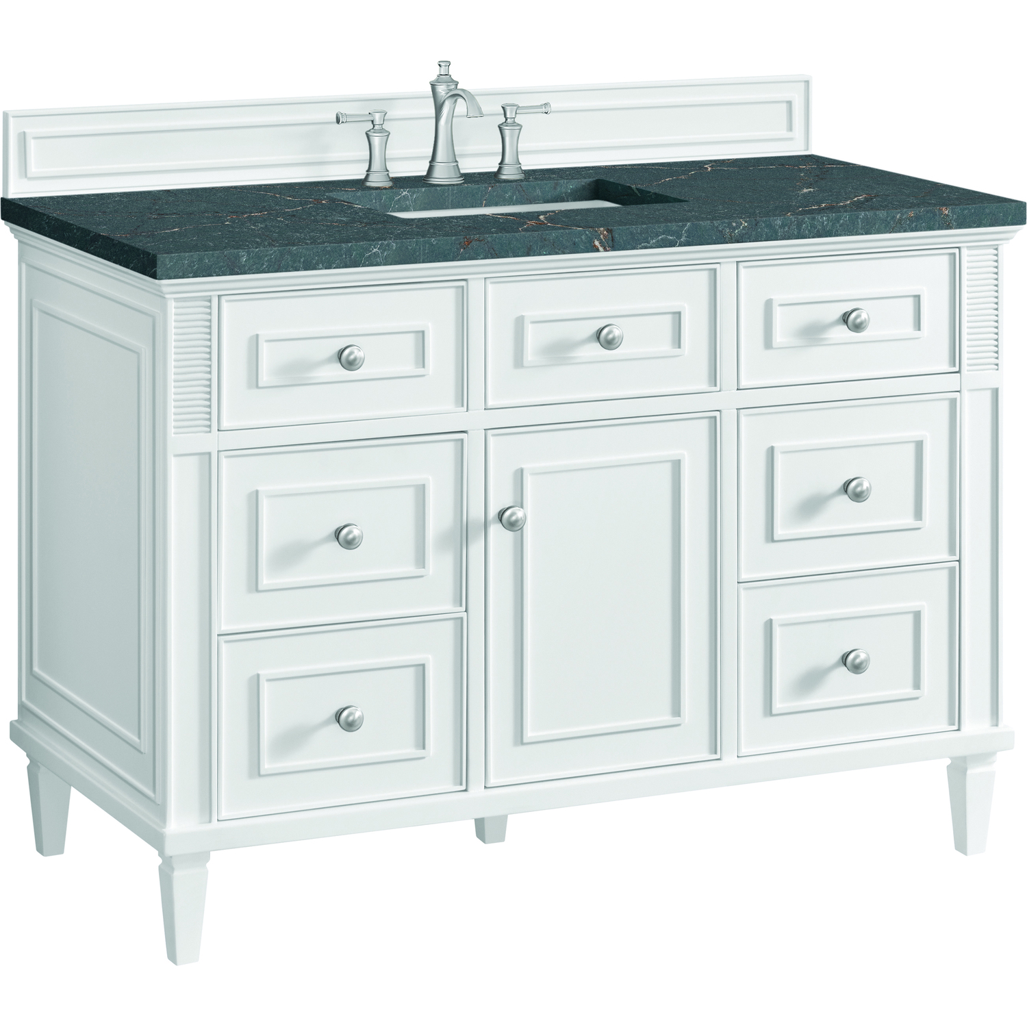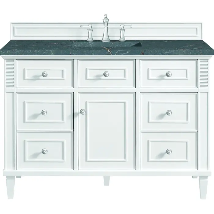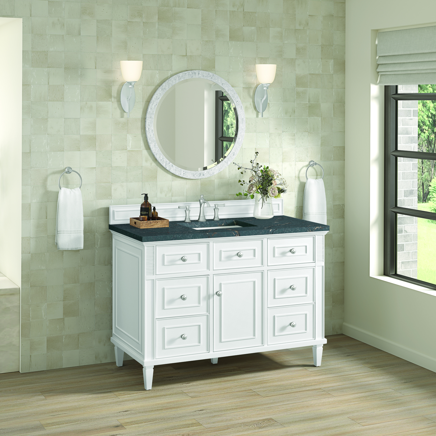 James Martin Lorelai 48 inch Single Vanity, Bright White w/ 3 CM Parisien Bleu Quartz Top, 840108971808, 424-V48-BW-3PBL