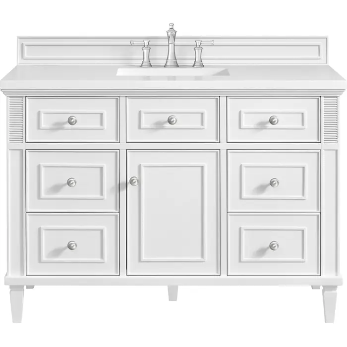 James Martin Lorelai 48 inch Single Vanity, Bright White w/ 3 CM White Zeus Quartz Top, 840108971723, 424-V48-BW-3WZ