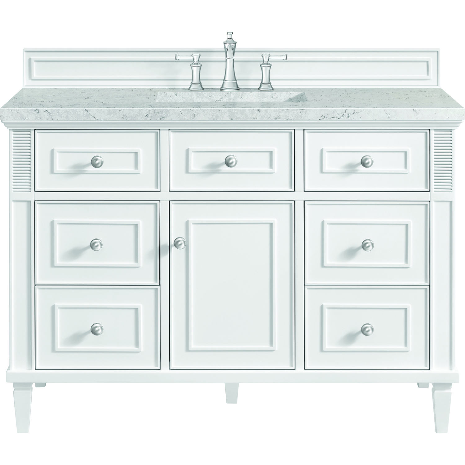 James Martin Lorelai 48 inch Single Vanity, Bright White w/ 3 CM Eternal Jasmine Pearl Silestone Top w/FreePower Wireless Charger, 840467810169, 424-V48-BW-FEJP