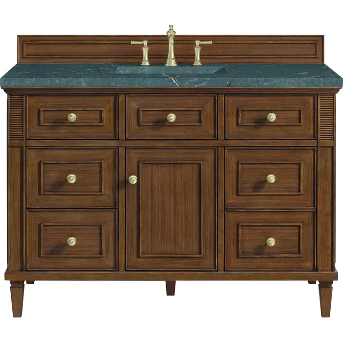 James Martin Lorelai 48 inch Single Vanity, Mid-Century Walnut w/ 3 CM Parisien Bleu Quartz Top, 840108972027, 424-V48-WLT-3PBL