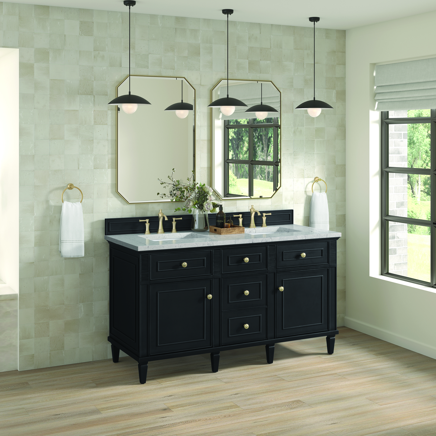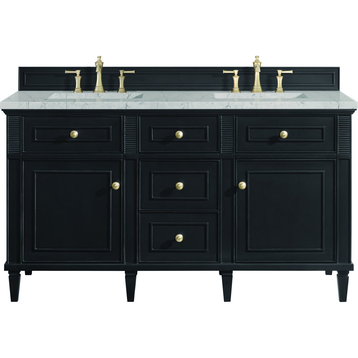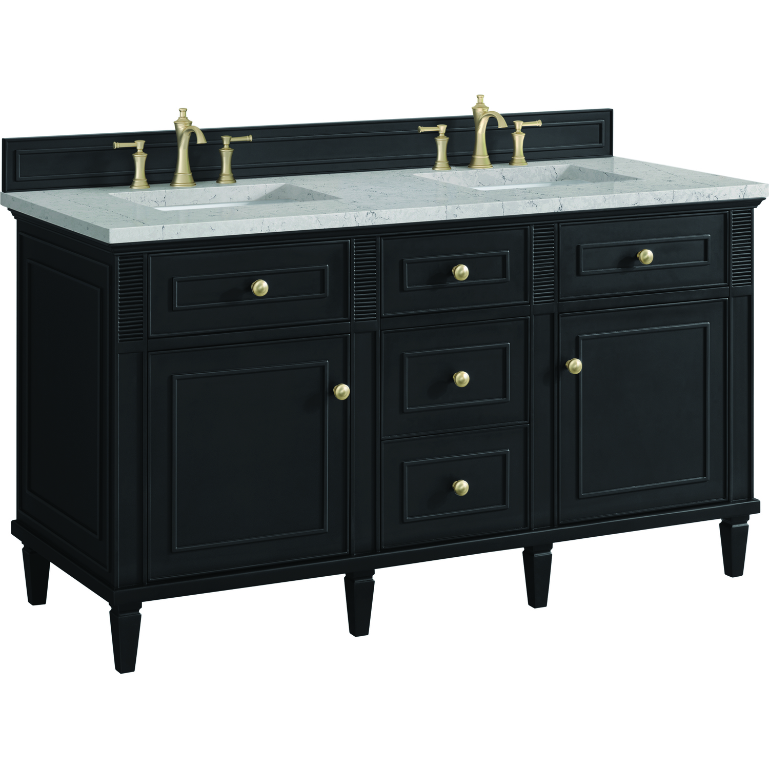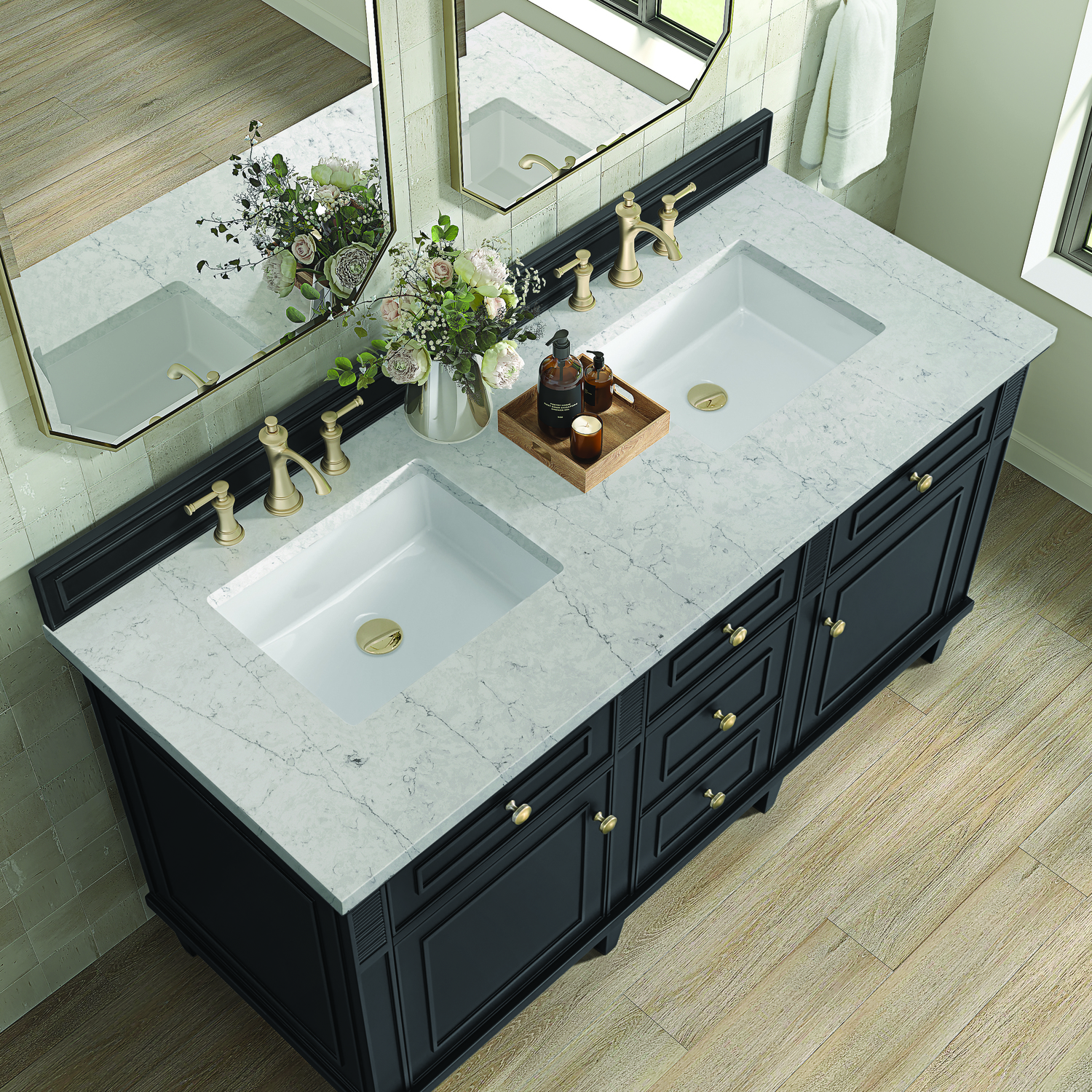 James Martin Lorelai 60 inch Double Vanity, Black Onyx w/ 3 CM Eternal Jasmine Pearl Quartz Top, 840108972218, 424-V60D-BKO-3EJP