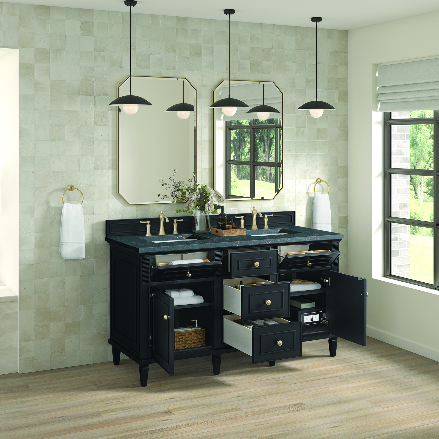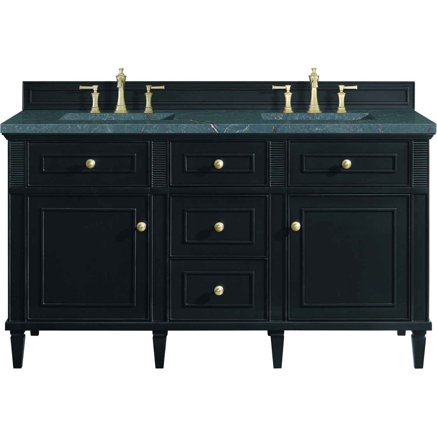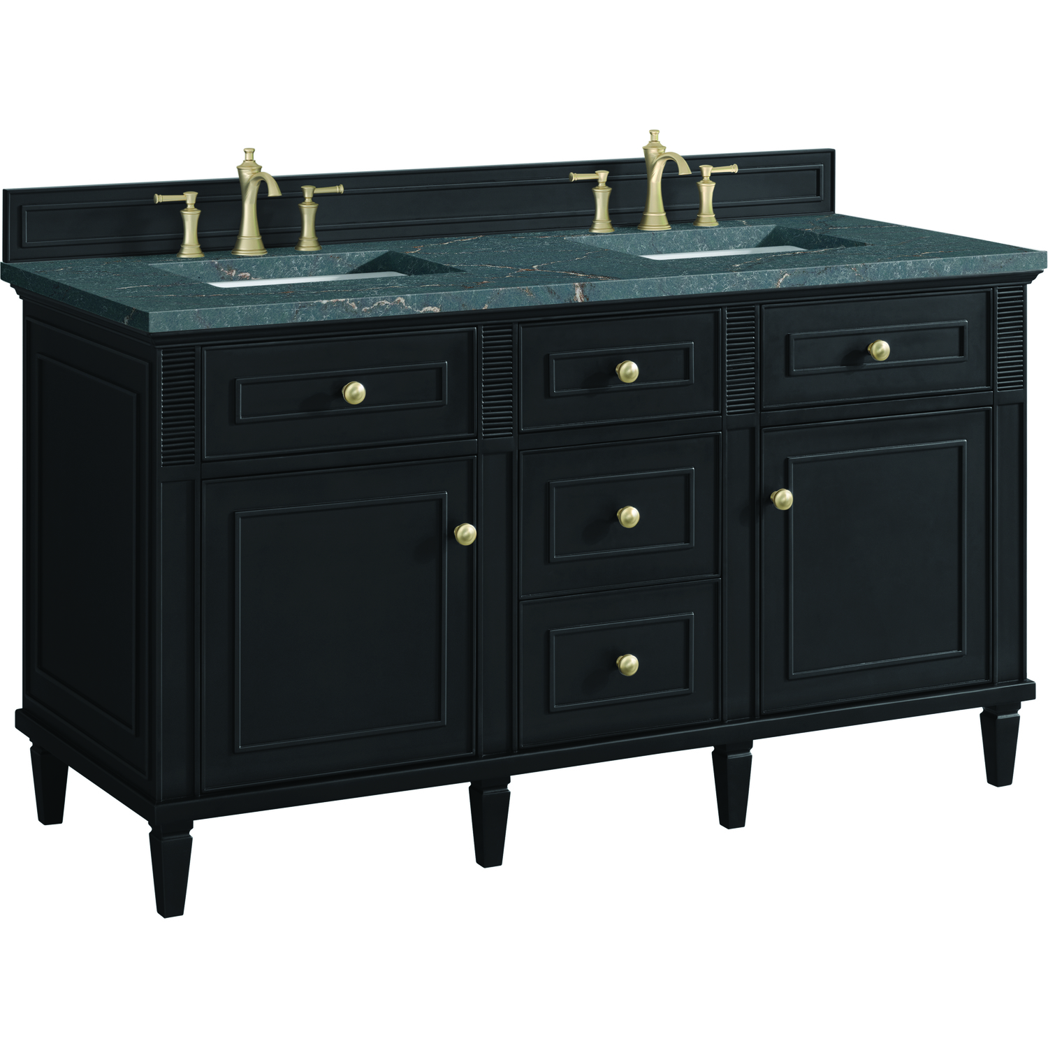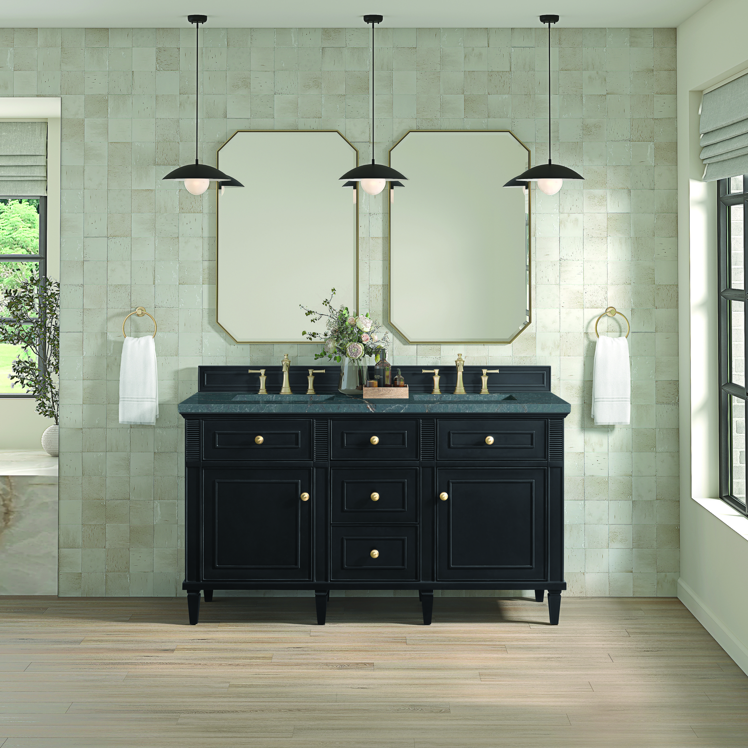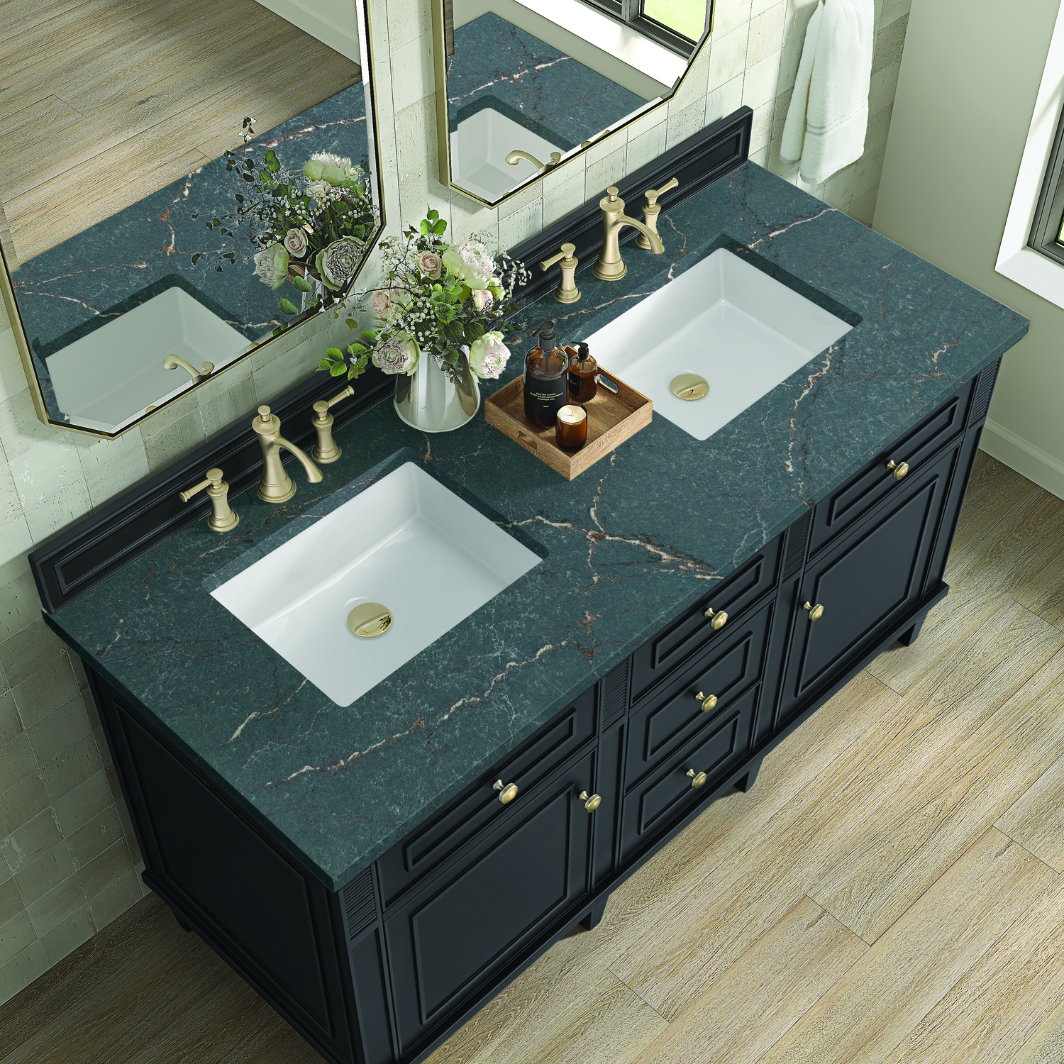 James Martin Lorelai 60 inch Double Vanity, Black Onyx w/ 3 CM Parisien Bleu Quartz Top, 840108972256, 424-V60D-BKO-3PBL