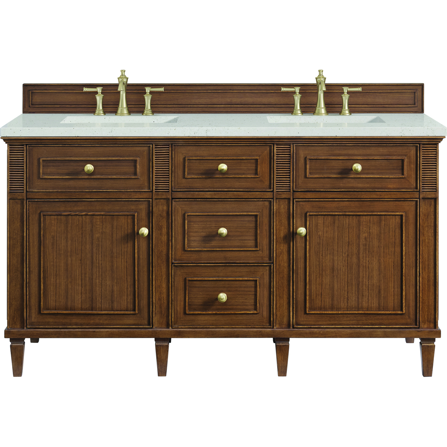 James Martin Lorelai 60 inch Double Vanity, Mid-Century Walnut w/ 3 CM Lime Delight Quartz Top, 840108972614, 424-V60D-WLT-3LDL