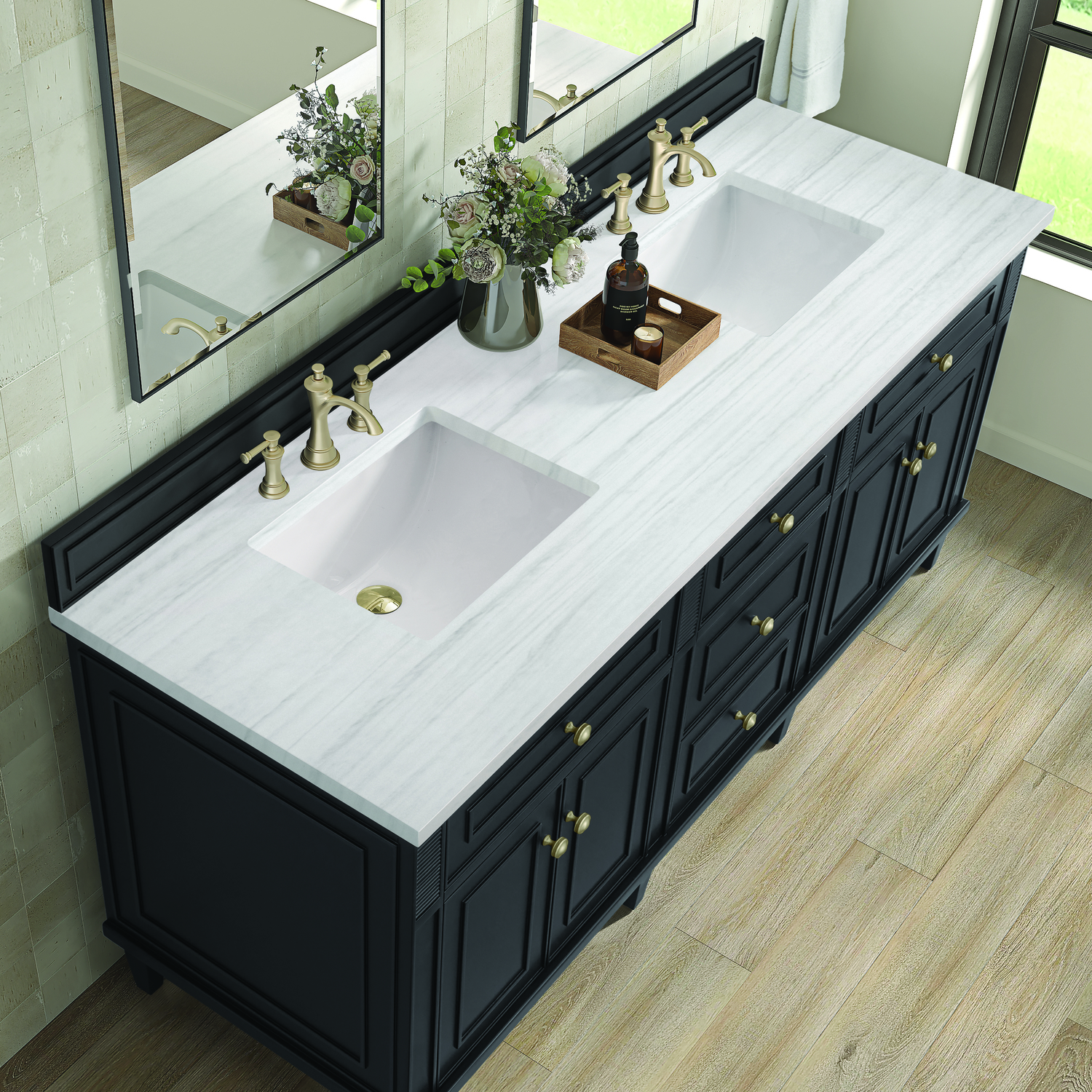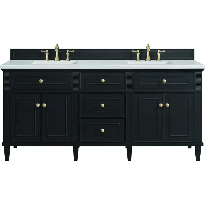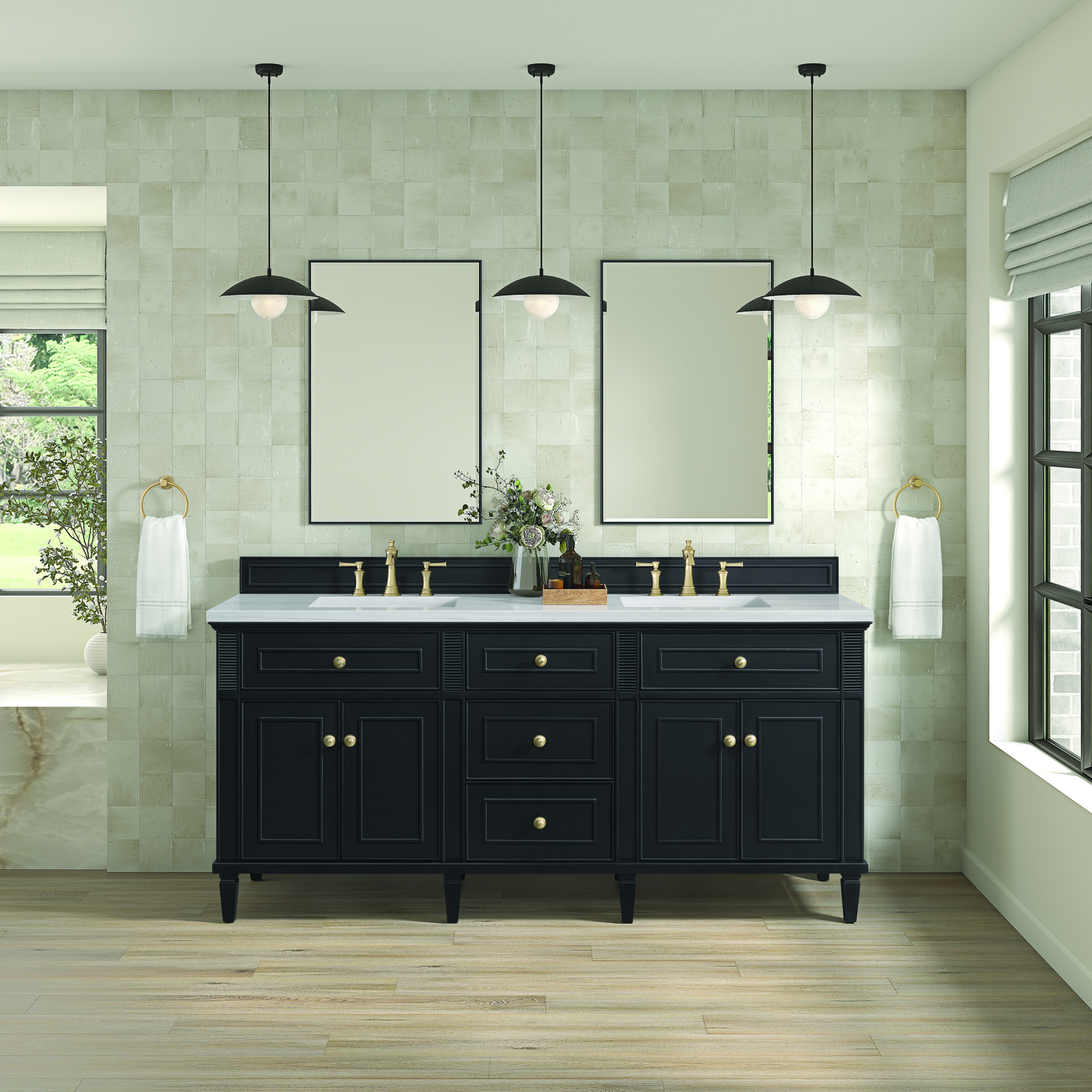 James Martin Lorelai 72 inch Double Vanity, Black Onyx w/ 3 CM Arctic Fall Solid Surface Top, 840108972775, 424-V72-BKO-3AF