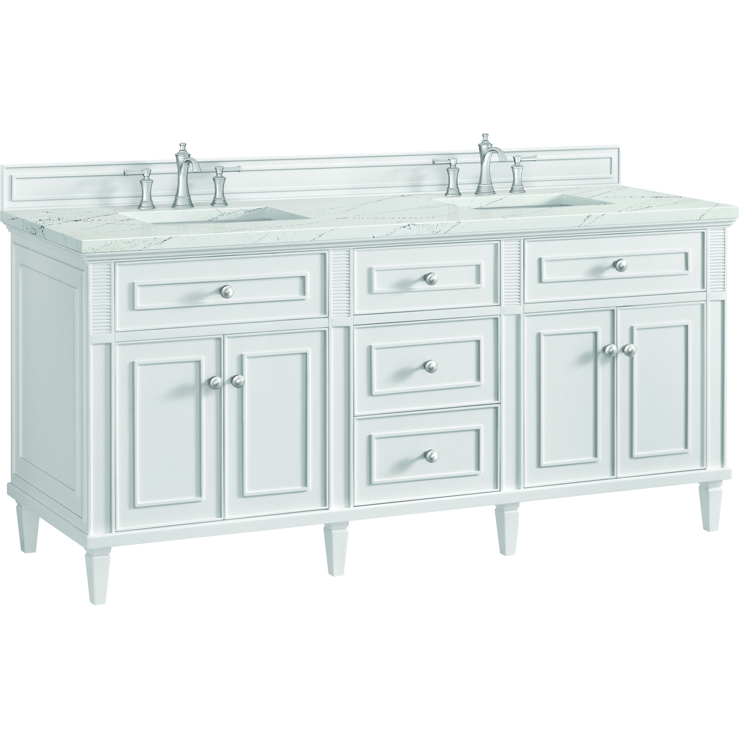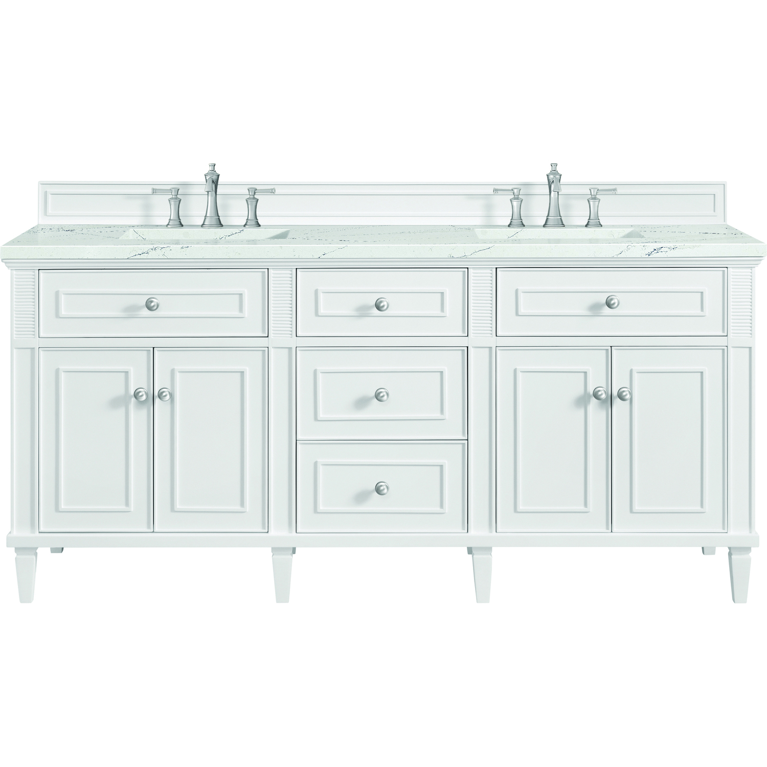 James Martin Lorelai 72 inch Double Vanity, Bright White w/ 3 CM Ethereal Noctis Quartz Top, 840108972904, 424-V72-BW-3ENC