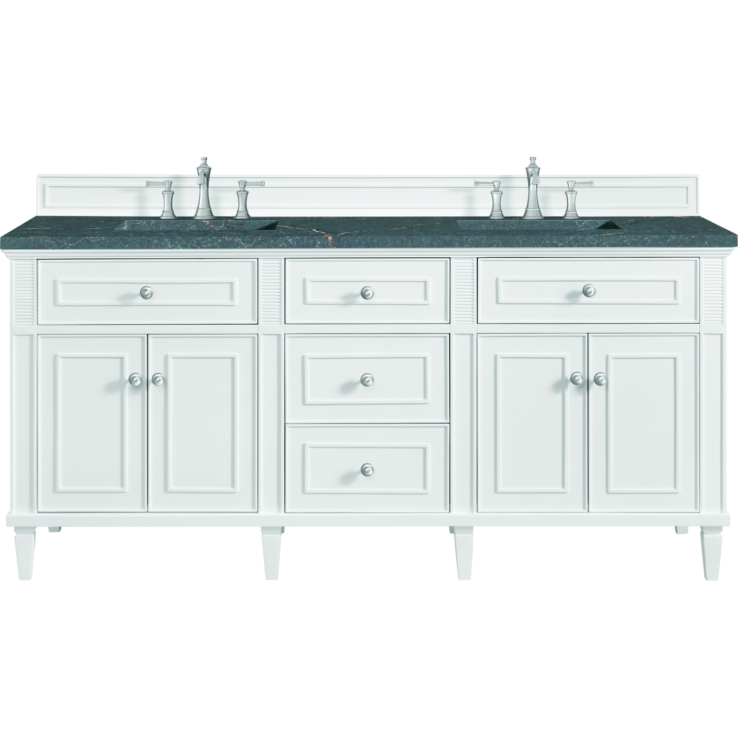 James Martin Lorelai 72 inch Double Vanity, Bright White w/ 3 CM Parisien Bleu Silestone Top w/FreePower Wireless Charger, 840467810589, 424-V72-BW-FPBL